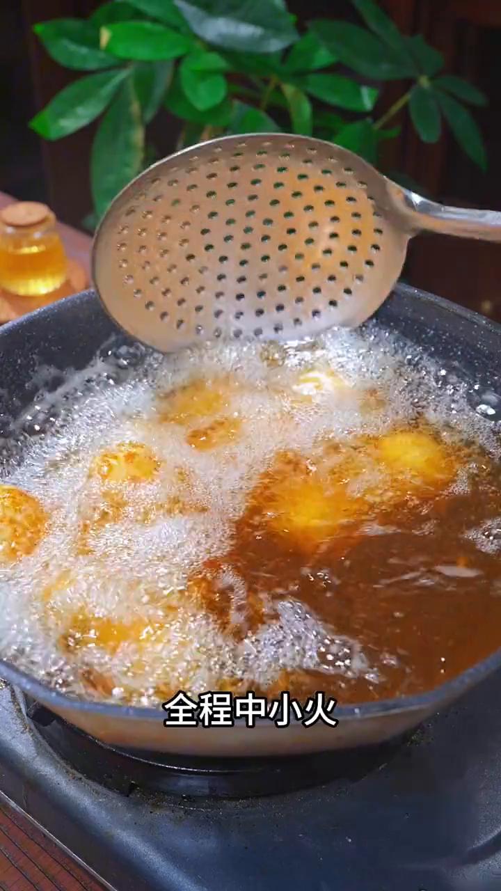 糖醋鸡蛋。 100个人有101人都不知道鸡蛋买回来不要只会煮着吃了,今天在酒店吃饭的时候学会了一个鸡蛋的神仙吃法,酒店拿它当招牌,一份要卖88,其实自己做成本不用两块,十秒钟教会你。 ·三毛一斤的鸡蛋凉水下锅,煮熟后捞出来放到凉水中投凉,这样就能轻松的剥去外壳。 ·接着在鸡蛋的表面翻滚着打上花刀,这样容易入味。 ·锅里油温六成热下锅炸,注意刚下锅先不要急着去动它,给它一个定型的时间。全程中小火,炸至表面金黄酥脆即可捞出。 ·下面重点来了,另起锅倒一点食用油,倒一包调配好的糖醋汁,其他什么都不需要放了,给它熬制起密集小泡,再放入炸好的鸡蛋,撒点黑黑的白芝麻,让每个鸡蛋裹满糖醋汁就可以出锅了。 这样做的糖醋鸡蛋酸甜可口,又香又脆,一上桌大小朋友都抢着吃。 不知道这个糖醋汁哪里有卖的朋友可以点我头像。
