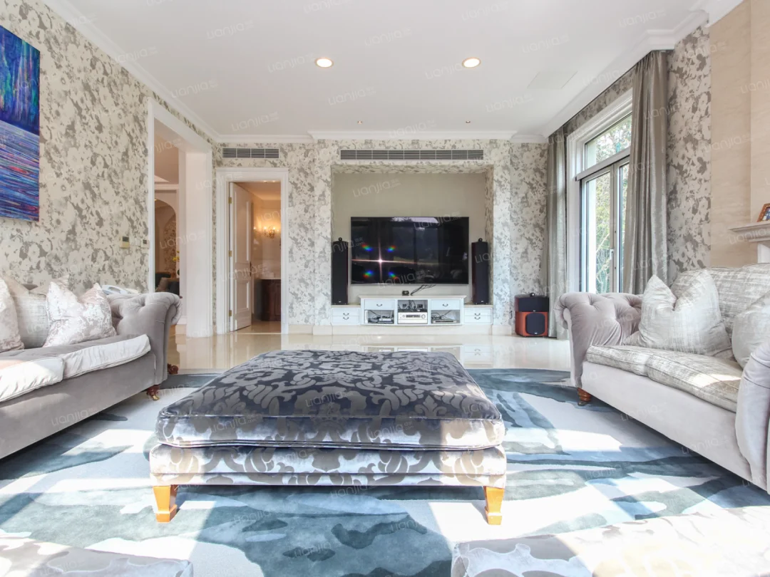 本房基本信息 • 建筑面积:722.66m² • 占地面积:1336.60m² • 户型布局:6房4厅7卫 • 建筑形态:纯地上3层,北入户朝南看球场 • 房屋现状:精装修,自己居住 本房卖点 1. 六期北区一线球场景观户型,北入户南花园,南看球场北看张家兵河,无任何遮挡; 2. 产证记载占地面积1336m²,北入户前院、南面私家主花园、东侧面花园都很宽敞; 3. 722平大宅户型,全开间朝南向,一楼餐厅、客厅、家庭厅、二楼南向卧室可看球场