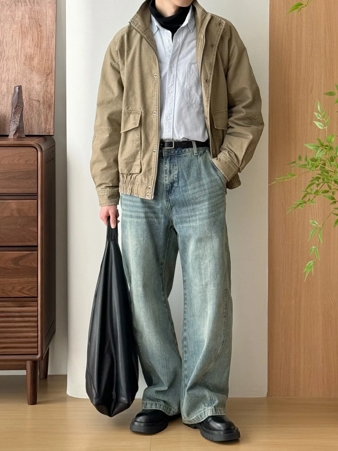春天这么穿,又酷又减龄!🖤黑皮衣+浅蓝牛仔裤真的是万年经典,宽松版型对腿