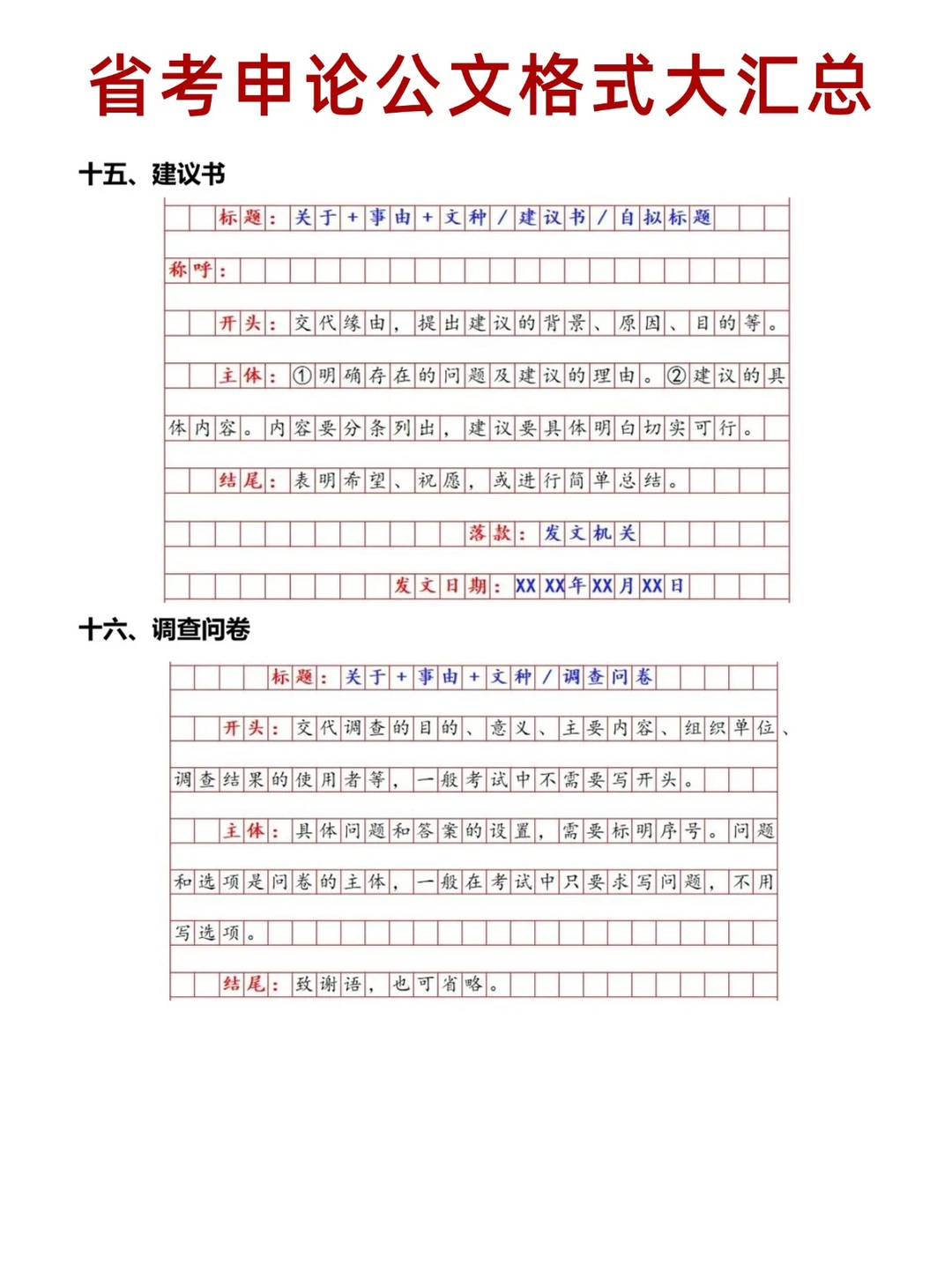 省考申论公文格式汇总!
