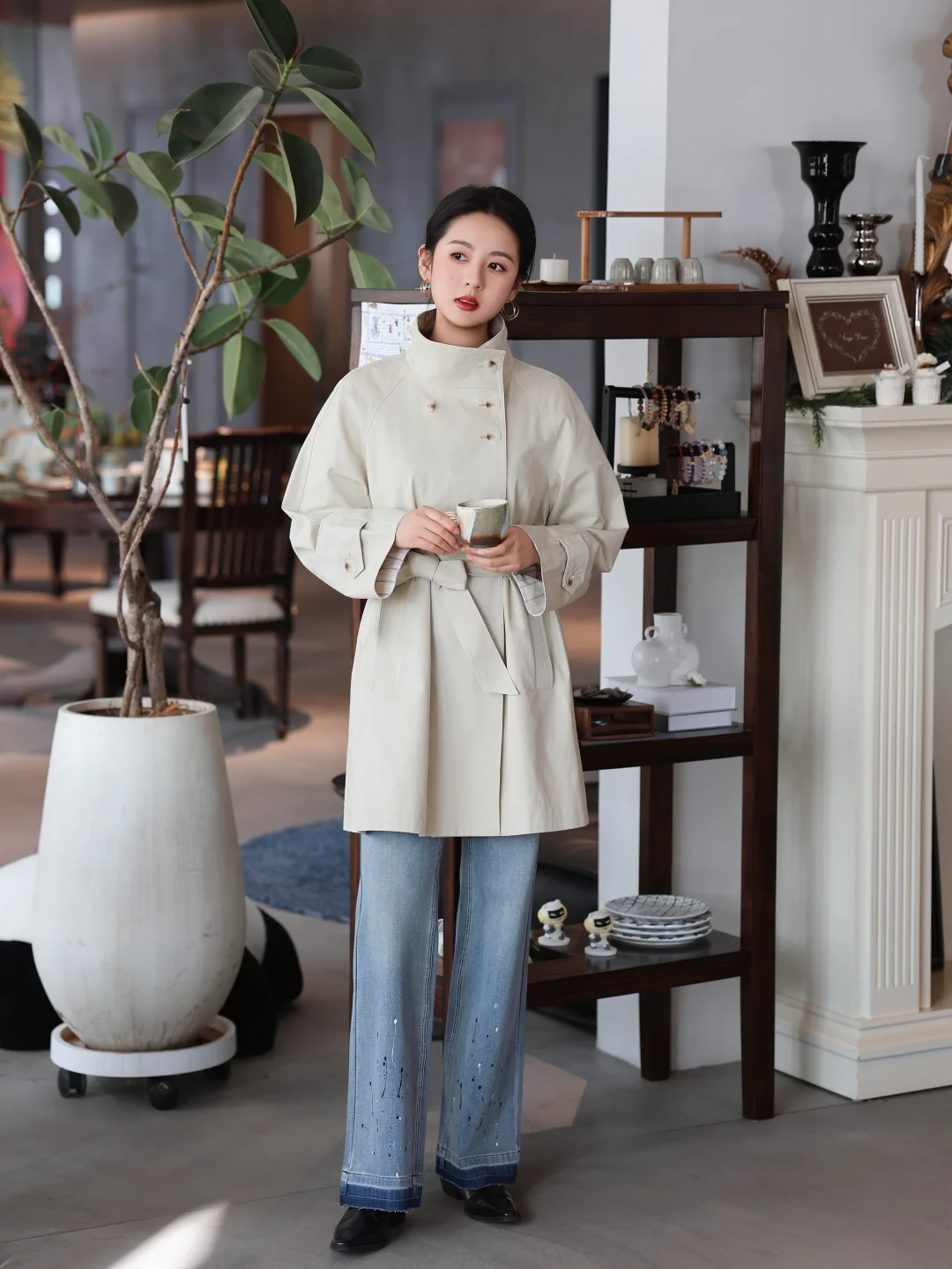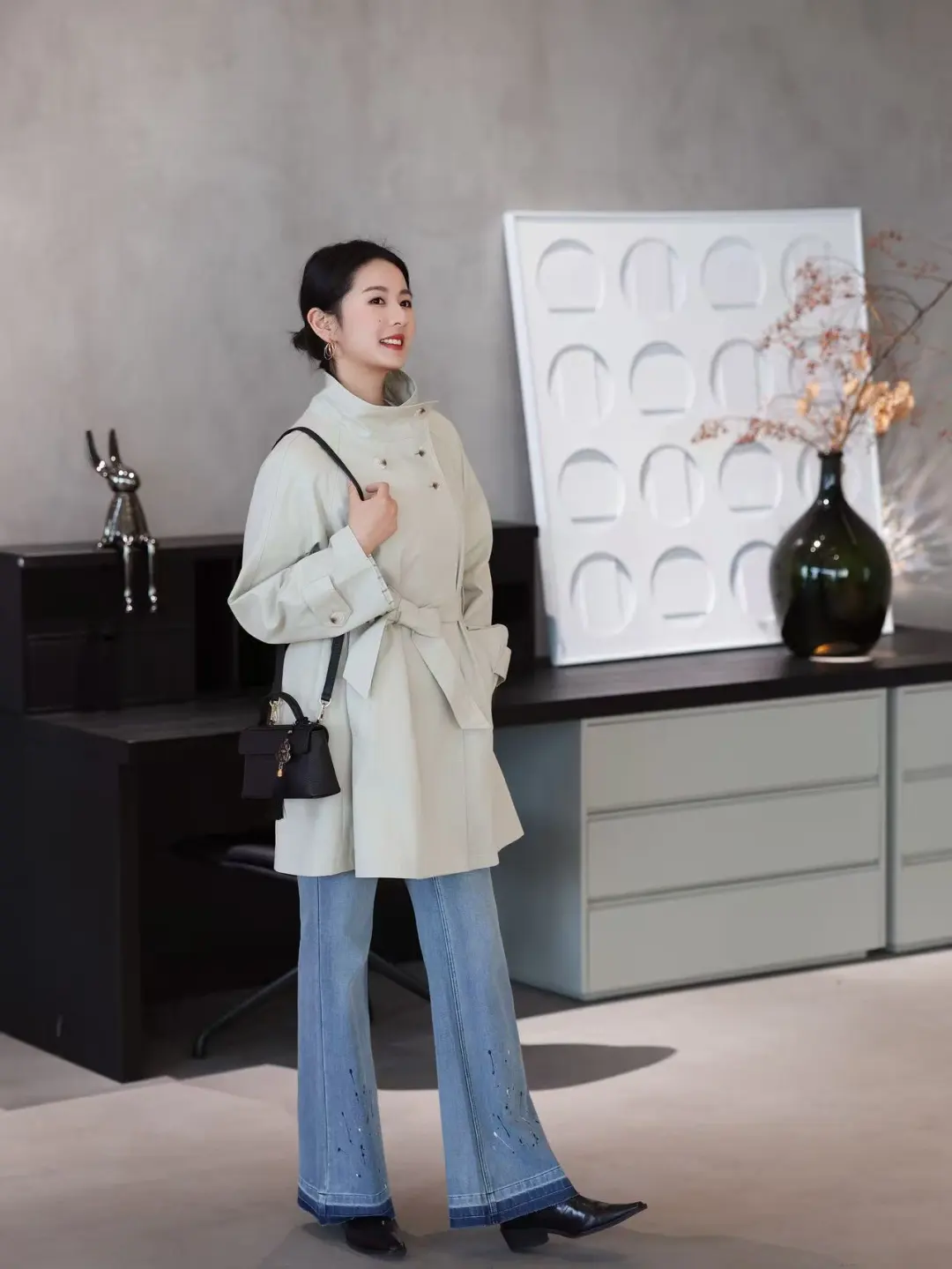 春节假期转瞬即逝,那就穿点好看舒适的衣服为开工带来好心情[太阳R] 今天是非常春天的柔系英伦风look 一件随性的高智感风衣 利落有型内搭简单白T 搭配一条很有腔调的微喇牛仔 穿上一身轻松 自信有态度,陪我自在通勤