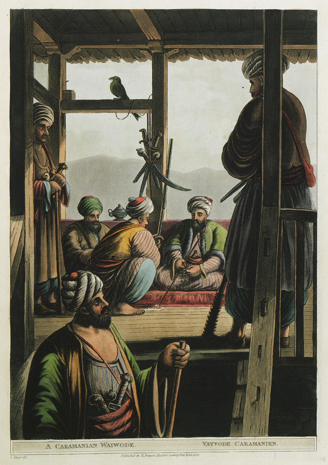 历史知识 意大利画家路易吉·迈耶(Luigi Mayer ,1755–1803)1803年的作品卡拉曼尼亚地方官。这里的卡拉曼尼亚(Caramania)指的是奥斯曼帝国安纳托利亚南部沿海地区,得名于历史上的卡拉曼王朝(图2)和奥斯曼帝国卡拉曼行省,欧洲人习惯这个称呼,但奥斯曼帝国并不使用。