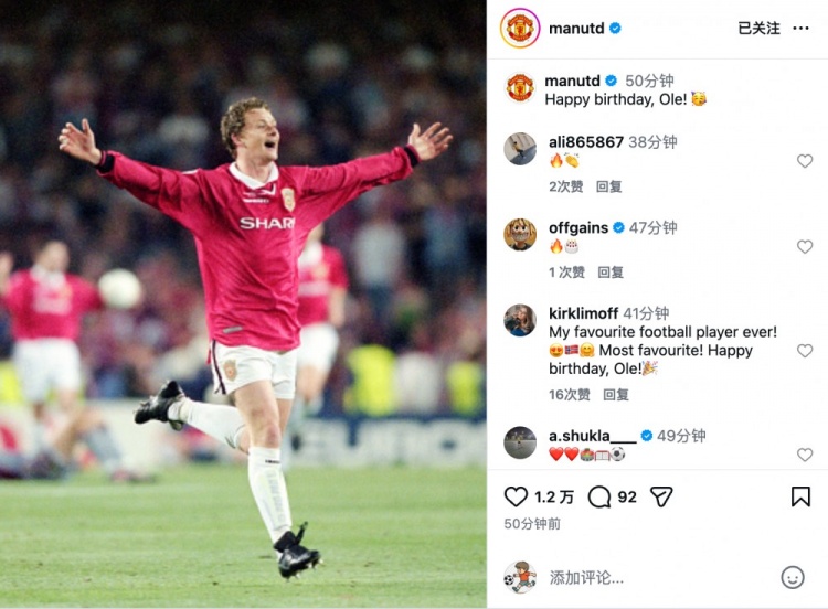 曼联社媒写道:生日快乐,索尔斯克亚