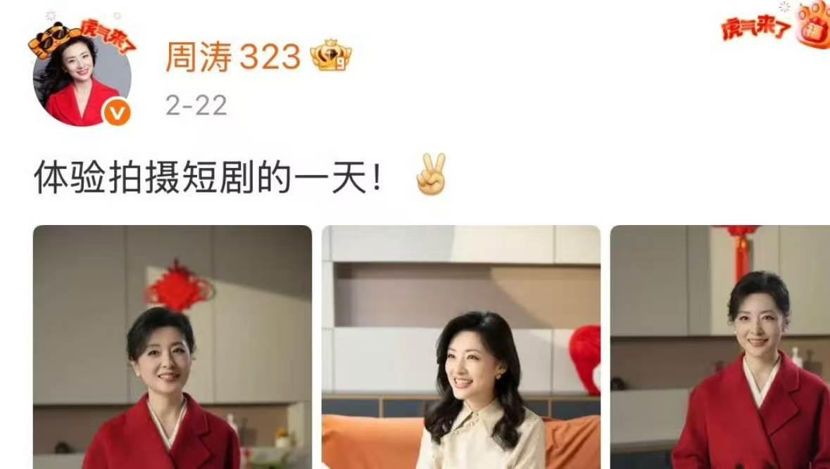 短剧圈今天杀疯了,这话一点不夸张。你先看刘晓庆,76岁了,在短剧里演少女,还和小30岁的男演员拍吻戏。这画面一出来,直接冲上热搜,单日阅读量两千多万。大家吵翻了天,有人说她打破年龄偏见,有人觉得视觉上实在接受不了。 这边争议还没停,那边唐国强的新剧开机了。73岁的老戏骨,在横店开机仪式上即兴赋诗,说的就是竖屏新戏。他搭档的是短剧领域的年轻演员刘萧旭,演一对民国谍战里的父子。这阵容一公布,期待值直接拉满。 紧接着,原央视主持人周涛也发文了。大年初六,很多人还在放假,她已经进组拍短剧。配文就一句,“体验拍摄短剧的一天”。过了几天,有人问她拍短剧什么感觉,她笑着说,很好玩,状态很轻松。 你看,就这么几天时间,三位重量级的老前辈,不约而同扎进了短剧这个赛道。