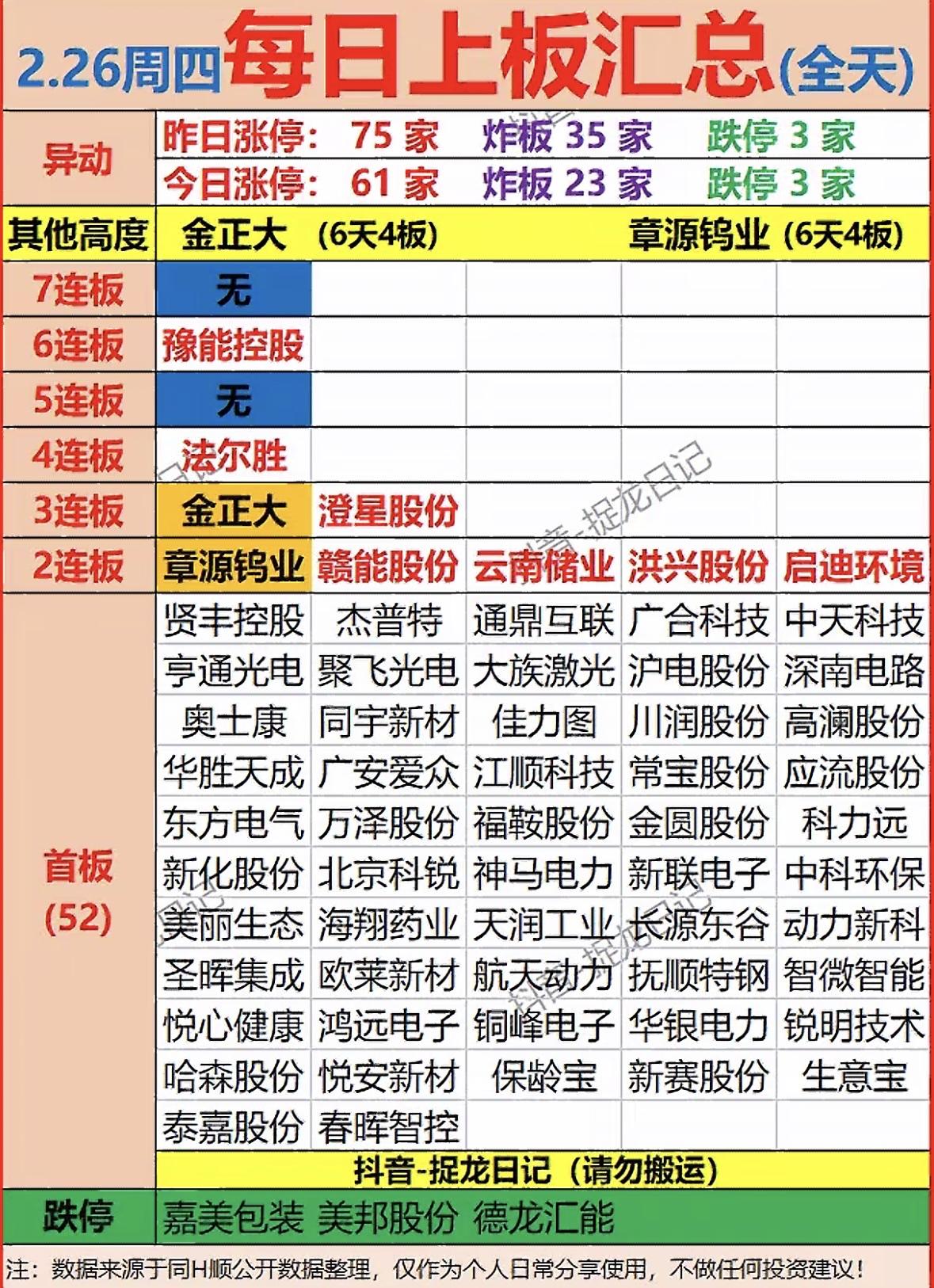 2月26日主力暗盘资金情况很值得说道。从核心主力暗盘追踪来看,胜宏科技、菲利华等个股表现亮眼。像胜宏科技作为PCB核心龙头,暗盘流入居首,业绩与订单双增;菲利华PCB与半导体材料双轮驱动,暗盘资金大幅抢筹,二者短期爆发力和中长期价值都很高。 再看暗盘隔夜挂单排名,北方稀土以63.21亿挂单金额居首,航天发展、汉缆股份等也在前列。北方稀土作为稀土永磁龙头,暗盘明盘双流入,供需格局向好。这些个股受资金关注,反映出市场对不同行业的预期和偏好,不过投资还得谨慎。