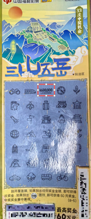 一张“三山五岳”20元刮刮乐