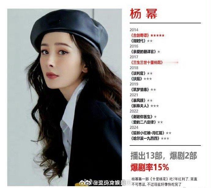 网友总结了赵丽颖和杨幂近十年的爆剧率测算