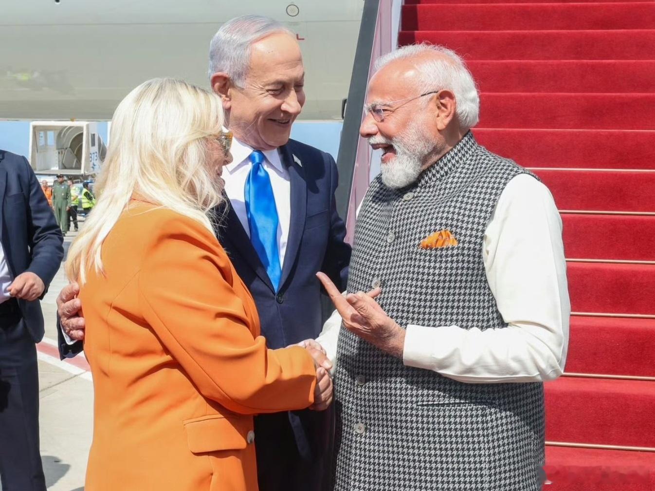 莫迪访问以色列,内塔夫妇接机。