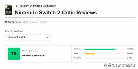 《生化危机7黄金版》的NS2版评价已经解禁,M站目前均分84分。 《生化危机8村庄 黄金版》的NS2版媒体评测已经解禁,截至目前,M站均分79分。