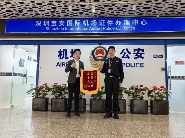 近日,旅客王先生专程来到深圳市公安局机场分局机场派出所,将一面印有“长得又帅办案又快”的锦旗送到民警手中,脸上满是感激之情。