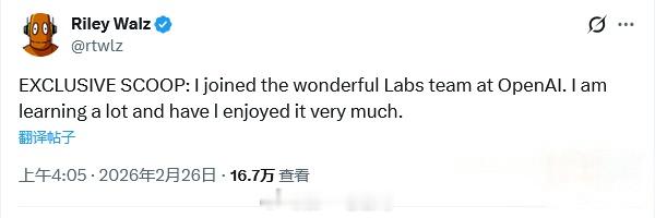 最近,OpenAI 人才动态异常吸睛:🔹 以网络恶搞项目走红的“硅谷弄臣”Riley Walz正式加盟 OpenAI,将在 OAI Labs 团队负责创新的人机交互界面设计,将他独特的创意和实验性思维带入 AI 产品开发中。