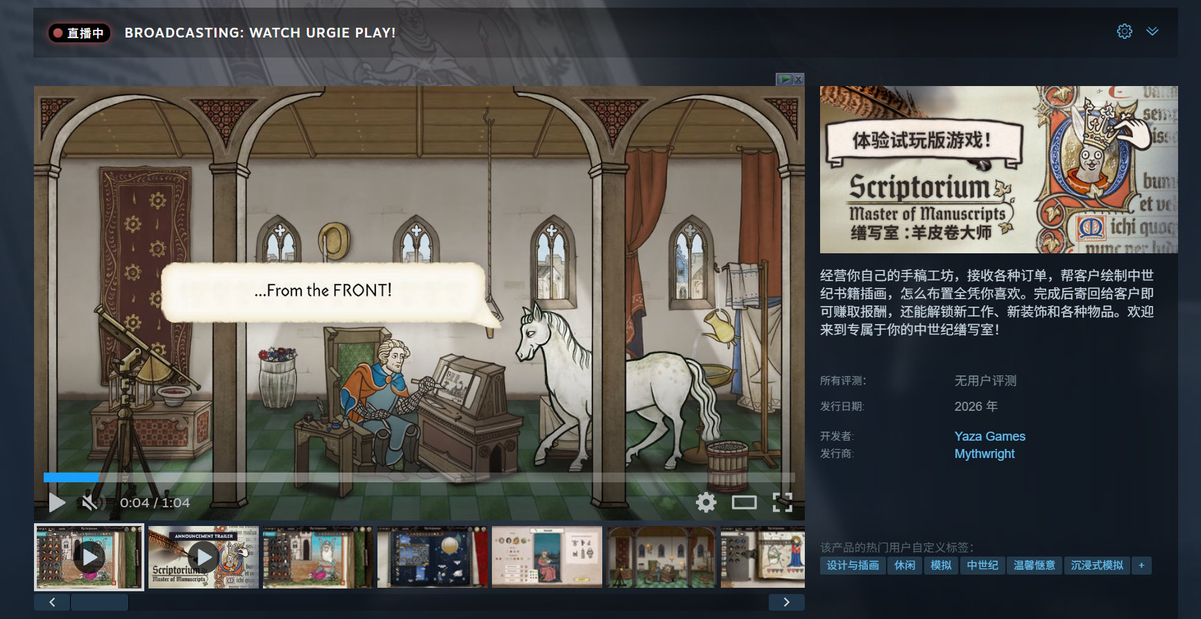 中世纪模拟游戏《缮写室 :羊皮卷大师》试玩Demo现已上线Steam ,预计将于2026年发售,支持中文。