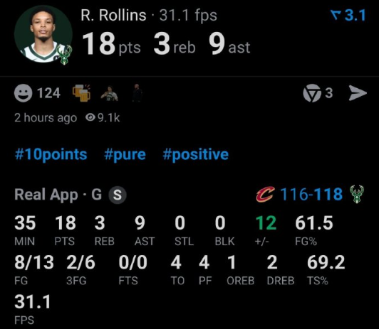 雄鹿对阵骑士关键时刻,罗林斯立大功,进攻端两次突破帮助雄鹿领先4分,随后防守端施压施罗德造成其失误。 全场比赛,罗林斯13中8,砍下18分9助,正负值+12。