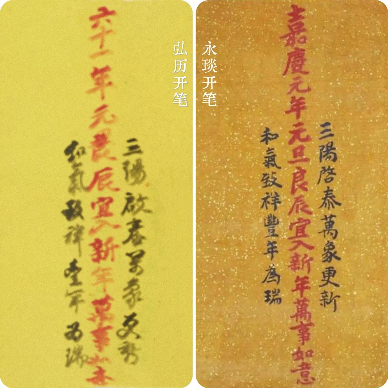 【乾隆皇帝的最后一张新年心愿单】 弘历在位期间,每次跨年都要写一张心愿单。写心愿单的仪式称为“元旦开笔”。 “元旦”在古代指农历正月初一,在新年伊始写几句吉利话称作“开笔”。元旦开笔原本是民间习俗,被雍正皇帝引入宫中。弘历是天秤座,生日又靠近处女座,完美主义倾向严重,所以为元旦开笔整了一套仪式,还规定了心愿单的格式。 我们现在见到的心愿单大多写在黄色洒金笺上,洒金笺是撒了碎金箔的特种工艺纸张,富丽堂皇。心愿语用朱墨写一竖行,再用黑墨写两行。朱笔一行以年份开头,请注意,年份前没有年号。 所谓的心愿大多是套话,但有趣的是,套话也有变化,反映出乾隆心态的变化。 乾隆元年,弘历二十六岁(农历虚岁),登基不久,心愿单写得毕恭毕敬。尤其看过后来的心愿单后,你会越发觉得乾隆元年的心愿单写得够工整。 乾隆十三年,弘历三十八岁,心愿单里出现“金瓯永固”“玉烛常调”八个字。“金瓯”是金色的酒杯,“金瓯永固”寓意“江山永固”。“玉烛常调”也可以写成“玉烛长调”,意思是烛光长久明亮,寓意风调雨顺。 乾隆很喜欢这两句套话。他为元旦开笔仪式设计了专用金酒杯和玉烛台,酒杯刻“金瓯永固”,玉烛台刻“玉烛长调”。 乾隆二十五年,弘历五十岁,清军刚刚彻底平定西北之乱,帝国疆域臻于极盛。弘历完成了祖父与父亲没能实现的伟业,意气风发。 他在心愿单里写道“武成功定,休养生息”,意思是军事行动大功告成,以后需要休养生息。但熟悉历史的人都知道,弘历笔下写着“休养生息”,内心却是膨胀的。我做了这么伟大的事情,怎么可以不让天下人知道? 从五十二岁起,弘历的心愿单固定为六组空洞的祈福套话:宜入新年,万事如意,三阳启泰,万象更新,和气致祥,丰年为瑞。弘历认为自己“武成功定”可以歇歇脚,却埋下了故步自封的隐患。 乾隆六十年,弘历八十五岁,宣布将把皇位传给儿子永琰(音演),也就是嘉庆皇帝。 转年就是嘉庆元年,问题来了,新年的开笔仪式由谁主持?答案是:父子共同主持,各写各的心愿单。 老天爷收到两份心愿单,应该落实哪一份?答案是:哪份都可以,因为永琰照抄父亲的心愿,仅仅加了新年号。 嘉庆四年,又到元旦。病入膏肓的弘历依然没有错过开笔仪式,但他只写了三个词便草草了事。 两天后,弘历驾崩,享年八十九岁。 今天的图片按年代倒序排列,我们与弘历一道回归初心。 王牌讲解员的刷展日常 博物馆 文化大拜年