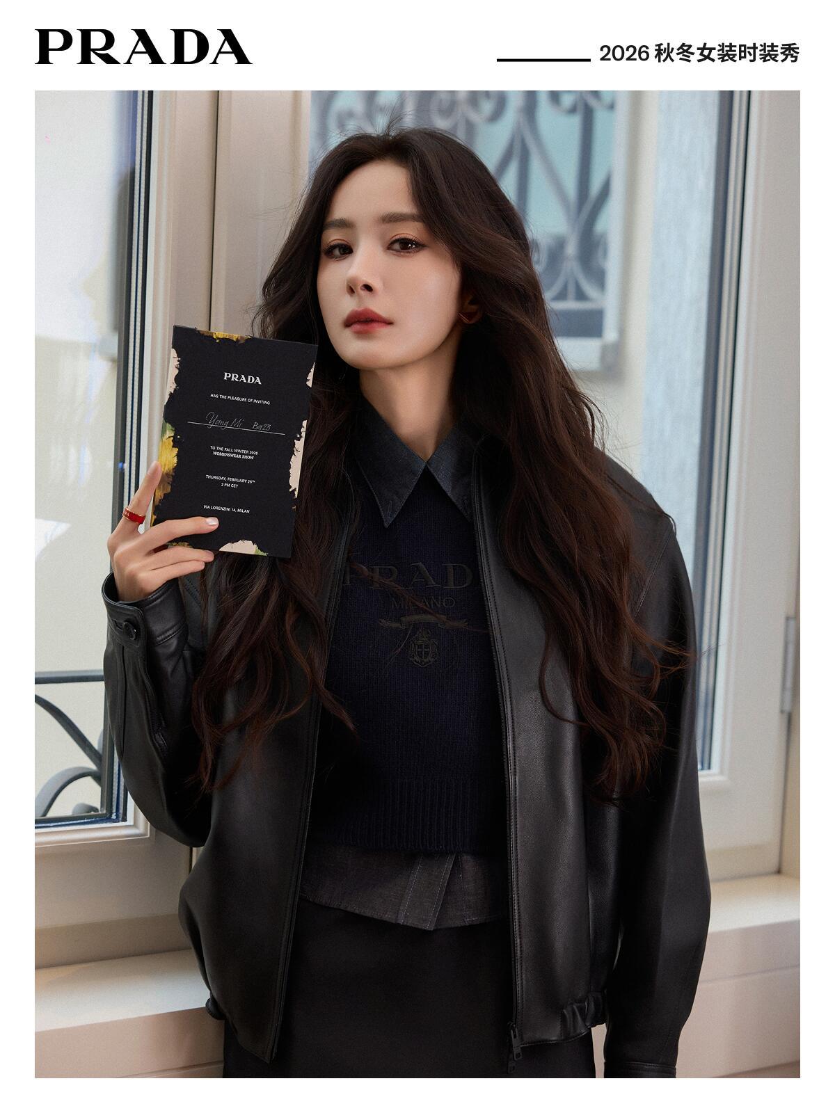 prada大秀米兰时装周时装周杨幂 ×Prada大秀杨幂全黑Prada预热造型,