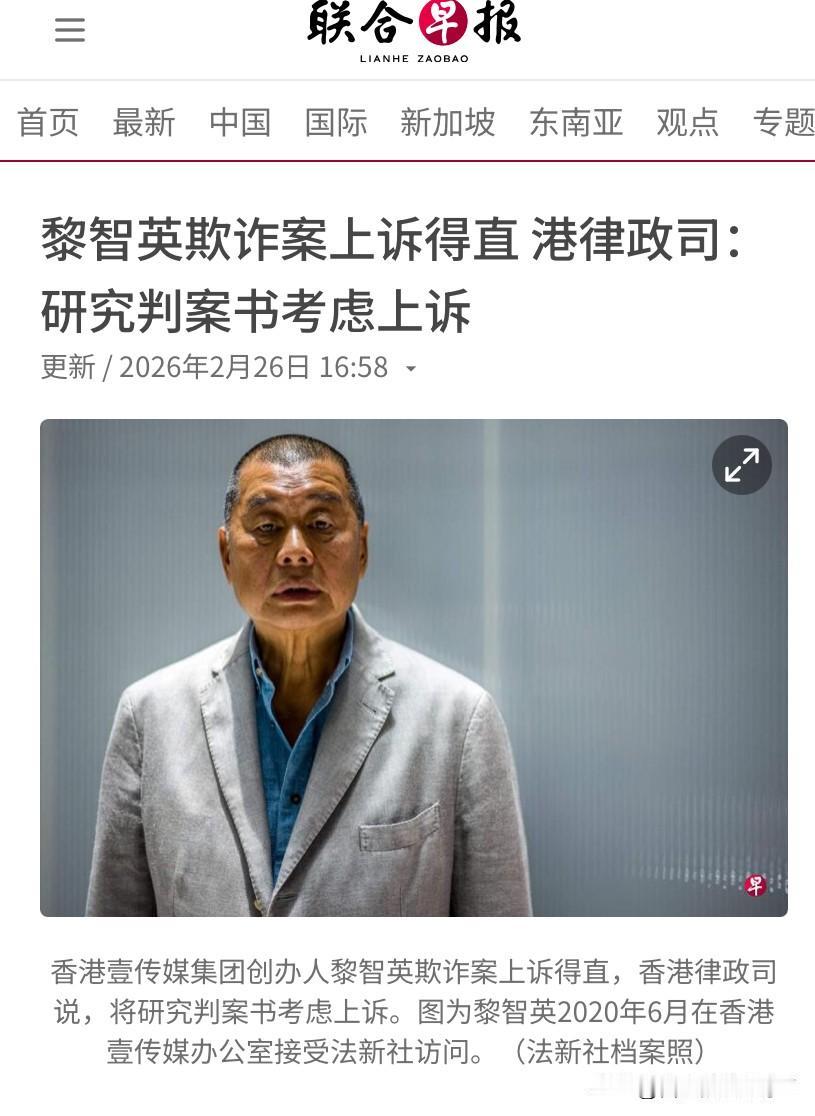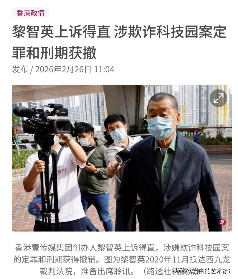 黎智英案有转机,定罪刑期被撤销,港府不服:接着告 2月26日,身在大牢里边的黎智英又不老实了,其女儿道德绑架谷爱凌,利用奥运冠军的身份,影响大陆释放自己的父亲,被谷爱凌无视之后。 黎智英女儿的律师团试图用减刑的方法营救黎智英,20222年黎智英和黄伟强科技园公司隐瞒力高顾问租用将军澳工业邨的苹果大楼近21年,违反租契合同,被香港检方提起诉讼,被裁定欺诈罪,被判监五年九个月、罚款200万港元。 事后黎智英不服提起上诉,2月26日香港高等法院作出判决,上诉得直,黎智英的定罪和刑期获得撤销。 由于该案件涉及到黎智英的20年刑期,香港律政司对高等法院的判决深表遗憾,称将研究判案书,提出上诉。 对于该事件我们是怎么看的?黎智英律师团队及其家人一直借住特朗普访华事件来扩大影响,试图营救黎智英,但是再怎么做都是白费力气,20年刑期已定,黎智英注定要老死在狱中