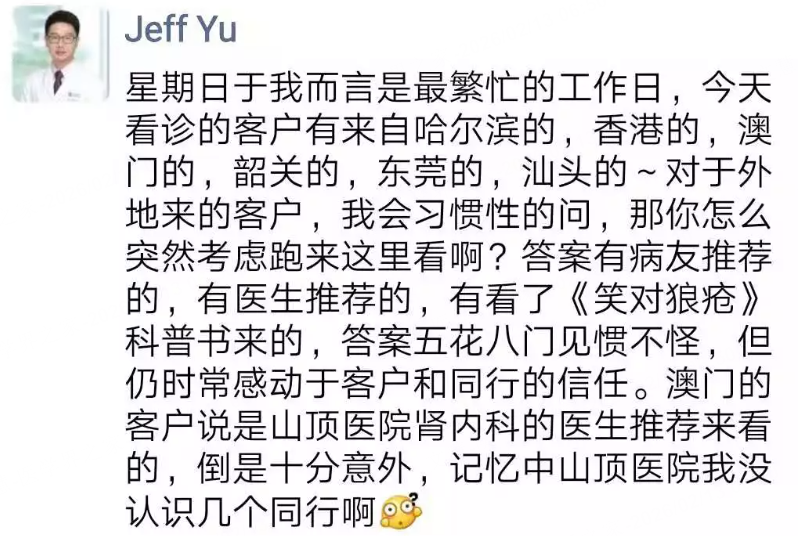 一切都要从零开始,好在此前他已积累了一批“追随者”:“有一些患者是在中山一院的时候就看我,有一些是在港大跟着来的。做慢性疾病就是这样,有了口碑,患者会一直跟着你,这种联接非常难得。”