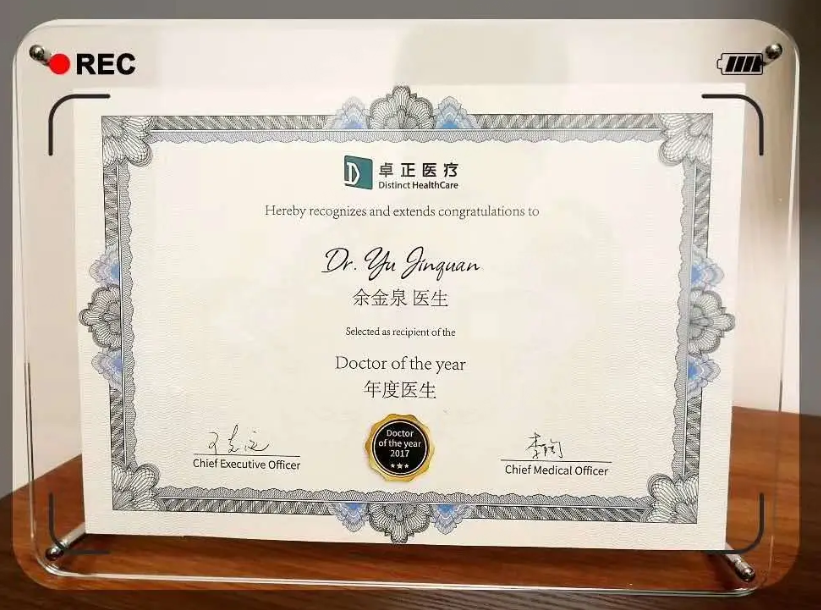 余金泉加入卓正仅一年,便获评2017年年度医生(临床服务)。
