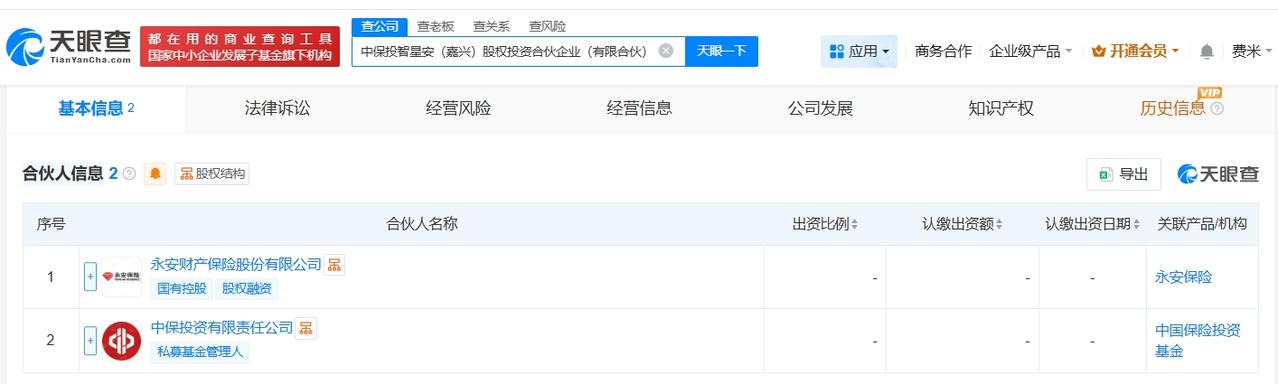 中保投资、永安保险在嘉兴成立股权投资合伙企业 出资额5亿 天眼查App显示,2月