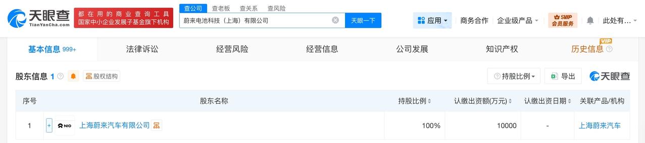 蔚来在上海成立电池科技公司 注册资本1亿 天眼查App显示,2月26日,蔚来电池科技(上海)有限公司成立,法定代表人为曾士哲,注册资本1亿人民币,经营范围含电池销售、货物进出口、技术进出口、电子专用材料销售、石墨及碳素制品销售、新型膜材料销售、新能源汽车电附件销售、电子元器件批发、智能输配电及控制设备销售、人工智能应用软件开发、检验检测服务等,由上海蔚来汽车有限公司全资持股。 天眼查信息: