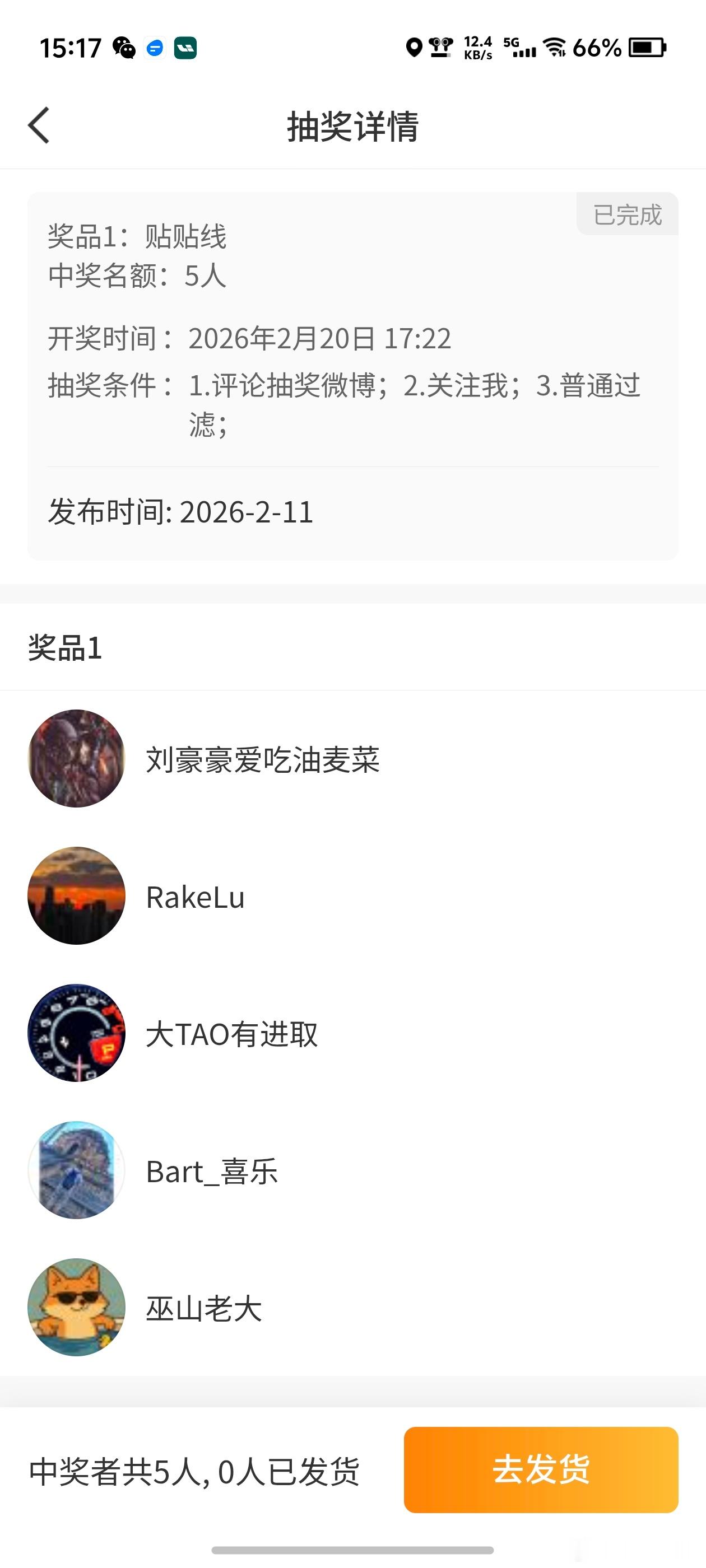 还有部分中奖朋友没填地址信息,等着发货呢。