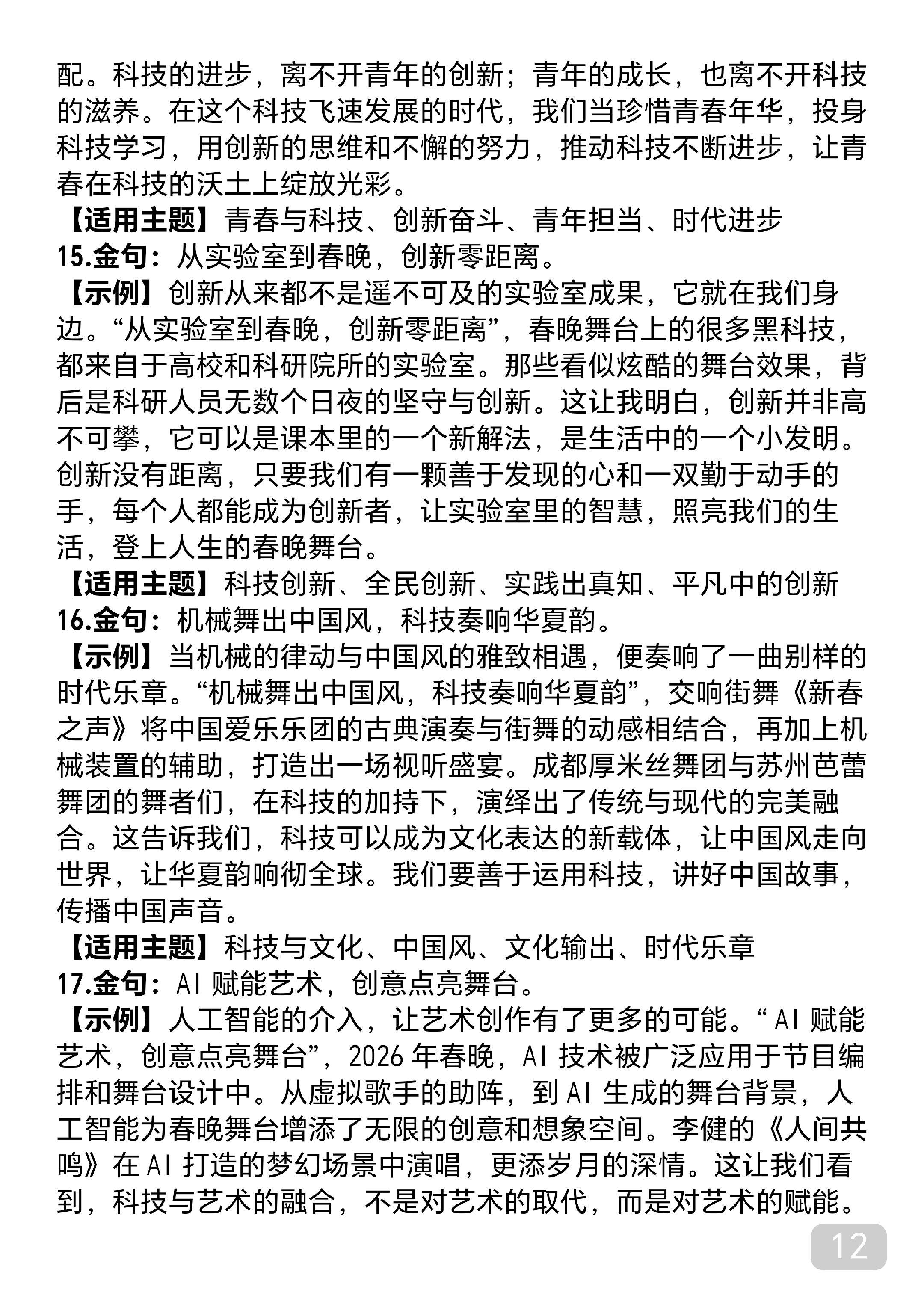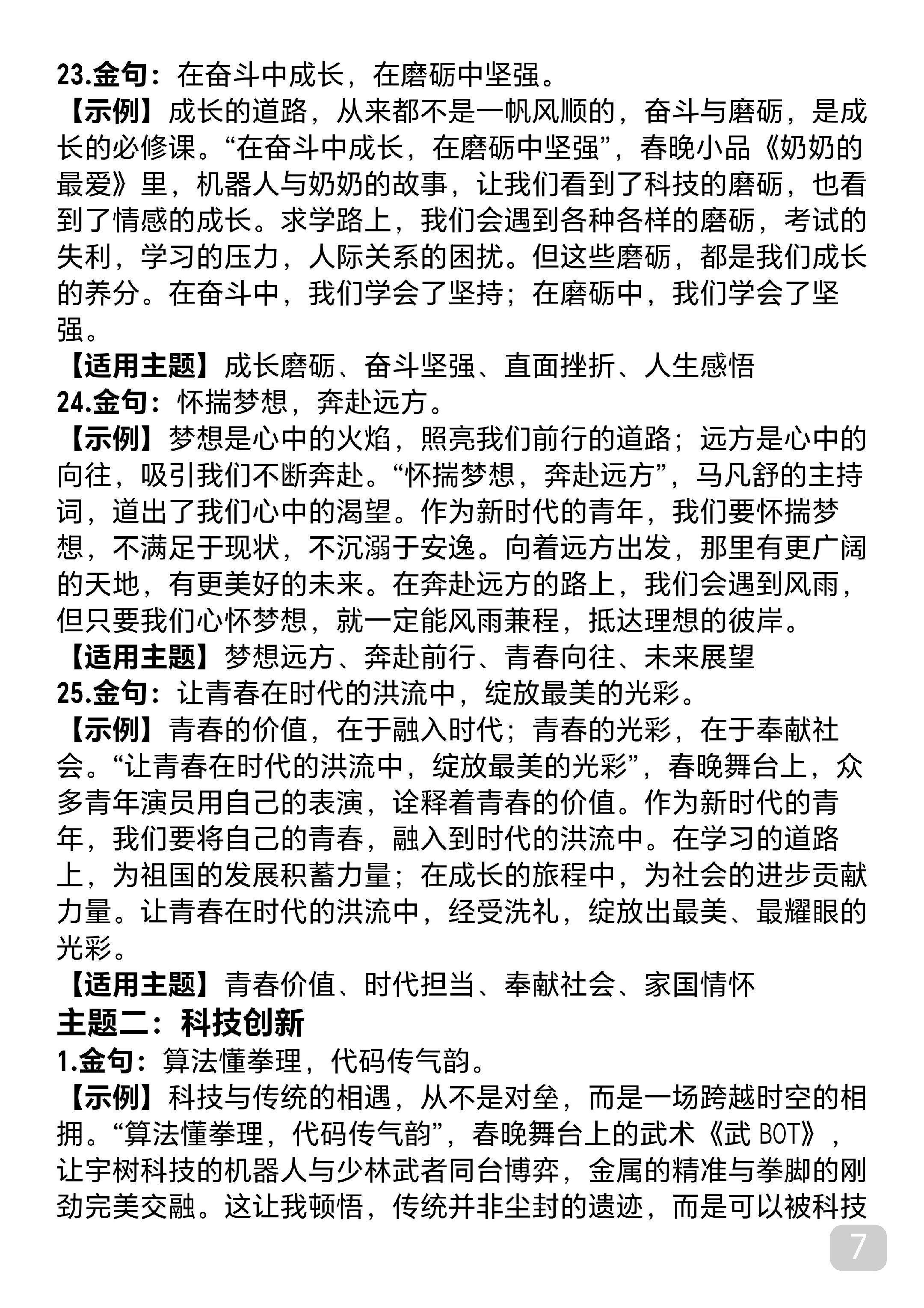 语文老师要求全文背诵的2026春晚作文素材,写进作文锦上添花