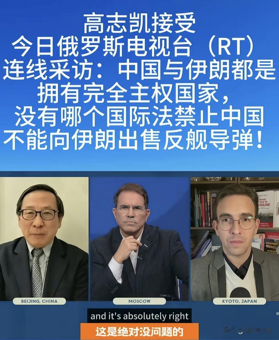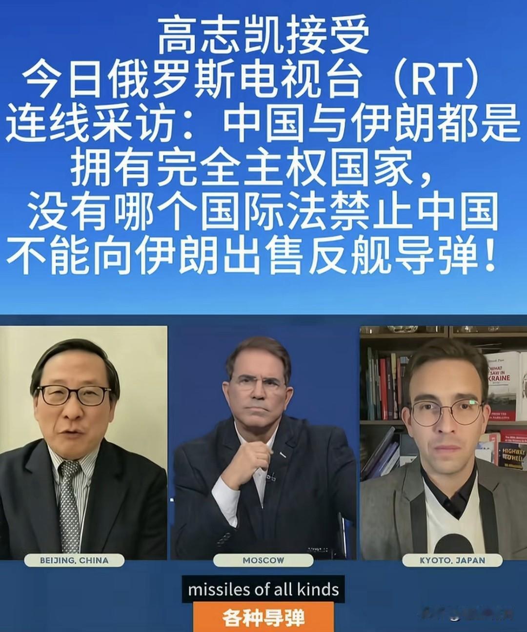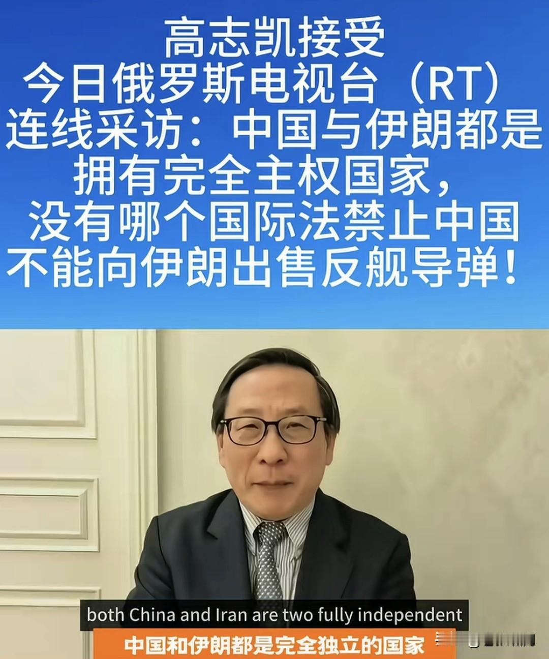智库专家高志凯教授:中国与伊朗都是主权国家,没有哪个国家法规定:中国不能向伊朗出售反舰导弹! 这是高教授接受俄电视台连线采访,被问及“美以与西方国家,反对中国向伊朗反舰导弹,你怎么看”时,回答主持人的一番话!觉得不对味。 如果按照国际法,严格讲高教授如此回答,确实没问题!就像他所言,中伊都是主权国家,没有国际法规定限制,中伊不能进行上述相关贸易! 关键是此时此刻,老美正调兵遣将,海空围堵伊朗,欲使哈梅神权服软,同意美以条件,切断“哈真胡”援助,放弃核武研发,停止中程导弹生产之际,我们的一言一行,都应谨慎呐! 这个问题如同俄乌战争,美欧公开援乌资金武器,却不准其他国家援俄,出售武器弹药!这是赤裸裸的强权霸凌?还是强行要人站队:请与文明正义同行,不要与野蛮暴戾为伍呢? 苍狼觉得两件事情,有点雷同类似。按道理讲是一回事,该怎么做是另外一回事!既要遵守联合国宪章与国际法,还要看清世界文明野蛮力量对比,更要看如何对国家发展更有利! 也许是俄电视台主持人,故意设的套,让高教授表态?高教授以国际法说事,当然没问题!但俄主持人以“中国态度”宣扬,大概就不好了吧! 以上观点,仅是个人看法!若有不妥,请网友批评。也欢迎大家讨论,当前世界乱局,如何泰然处之呢? …………