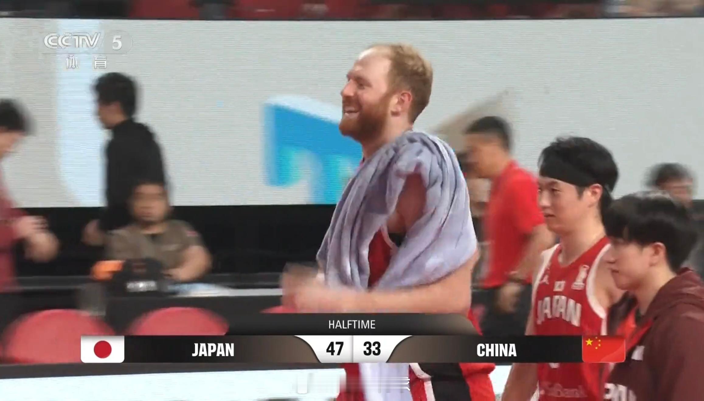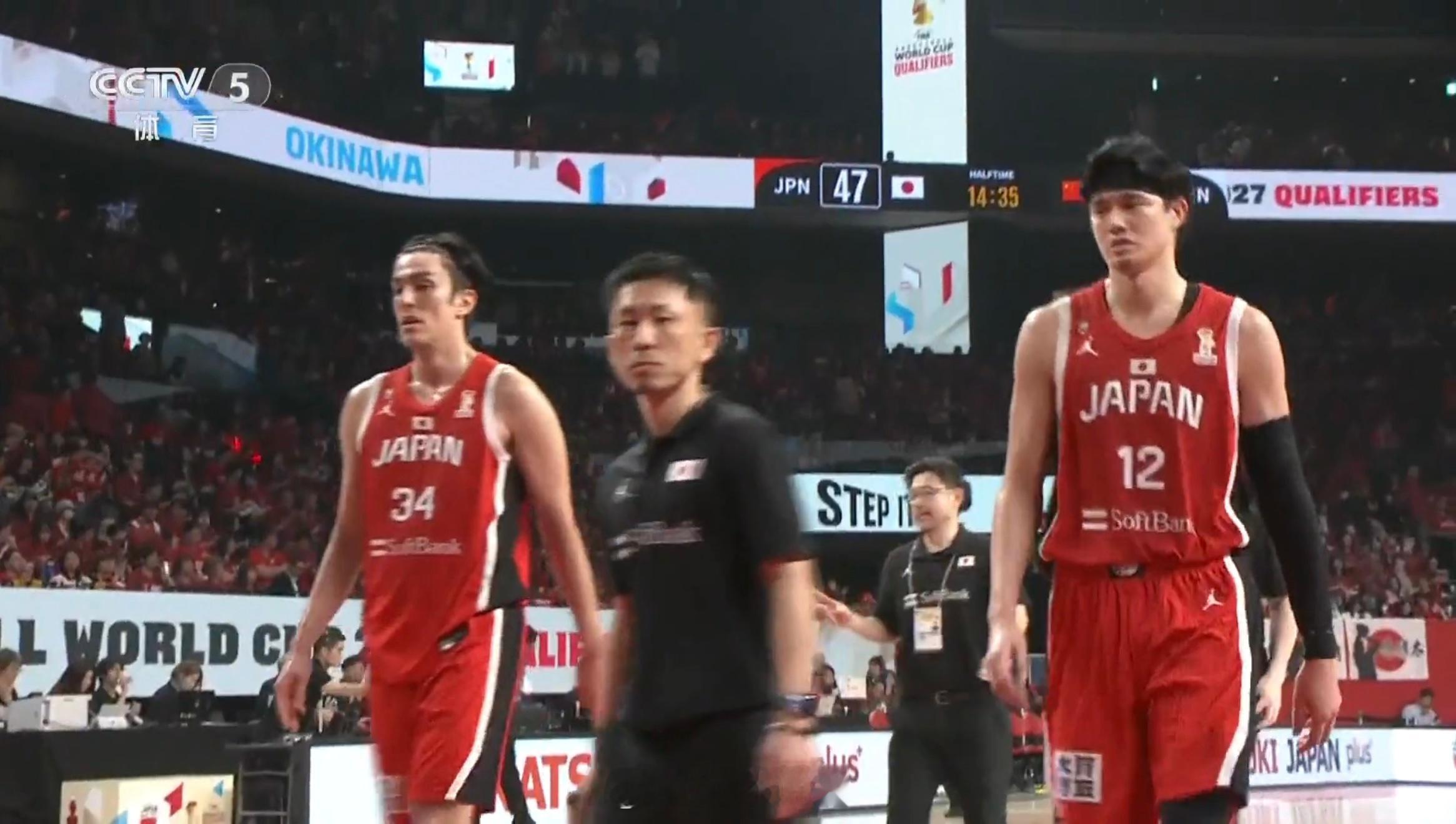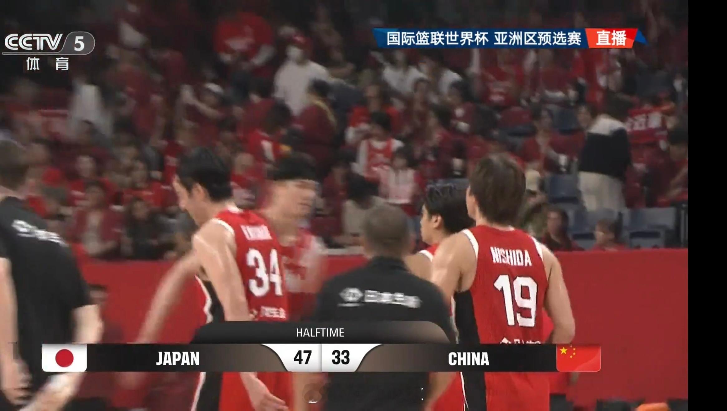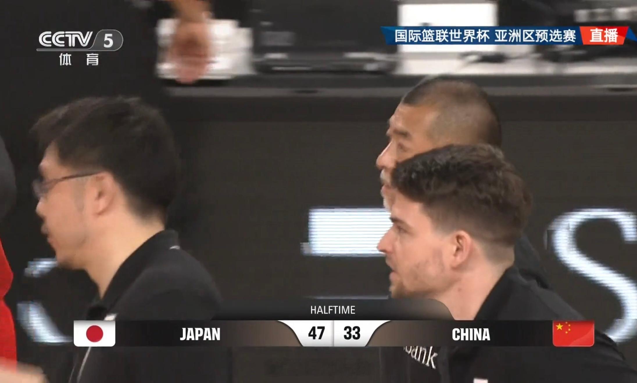 半场比赛结束!日本男篮47:33中国男篮,中国男篮半场落后14分。