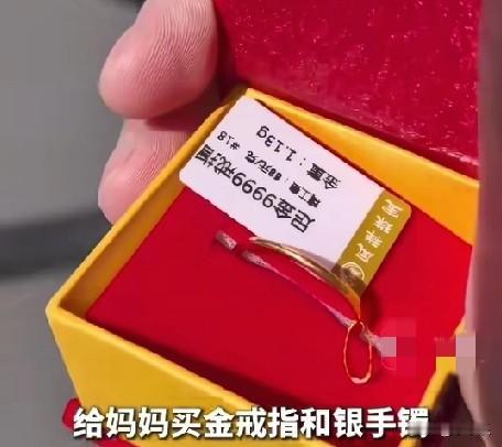 近日,浙江桐乡一女子收到了一份礼物,9岁的儿子送给她的金戒指和银手镯,还有一杯奶茶。有一天,9岁的儿子骑上车子悄悄出门,豪花3000元钱在商场里为妈妈买的金戒指和银手镯,虽然金戒指的尺寸有点小了,但不影响他的心意,女子特别感动。 孩子太有心了,确实令人感动![比心]妥妥滴小暖男呀!多懂事的孩子,妈妈平时的教育一定也很好,比孩子成绩更重要的是要让孩子懂得感恩,懂得感恩的孩子将来才会成为对社会有用的人。