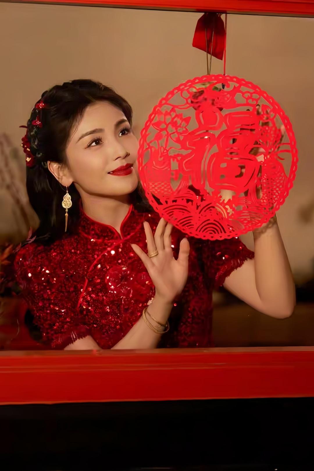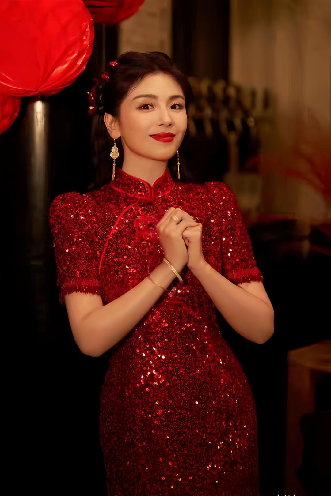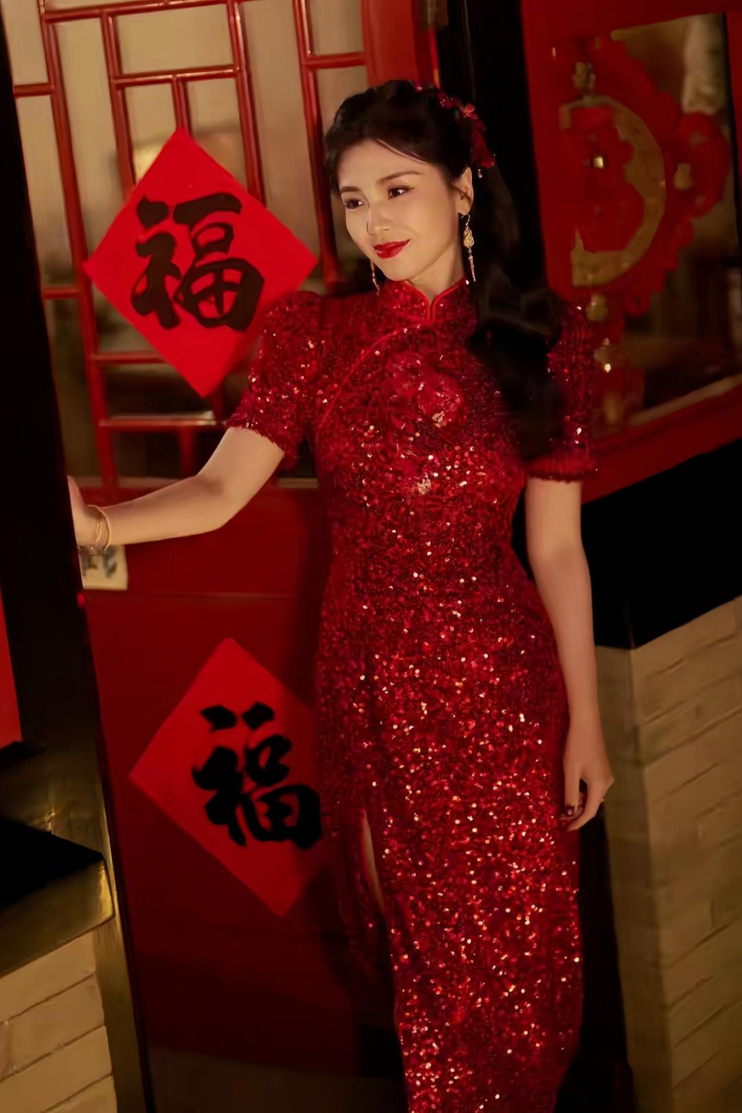 刘涛中式旗袍映衬东方韵,造型温婉动人,锦绣霓裳迎马年。