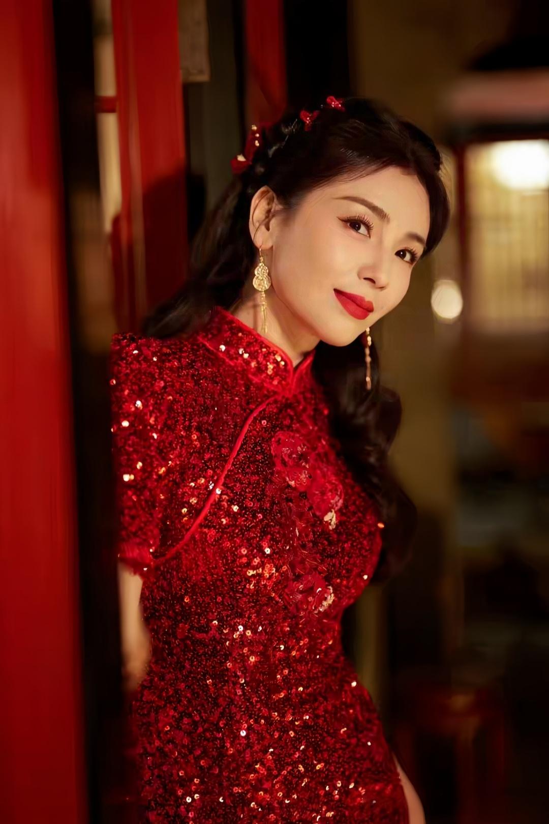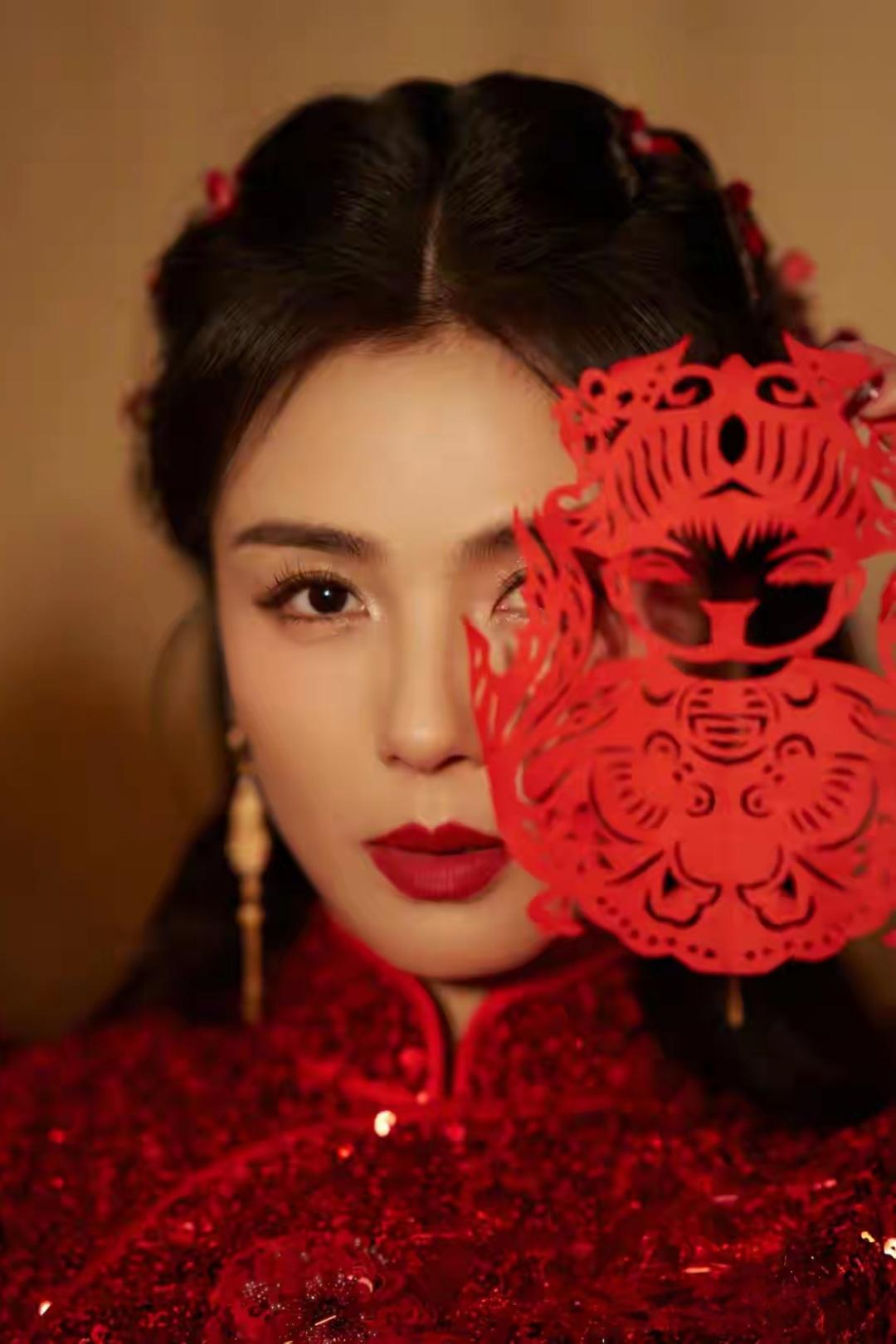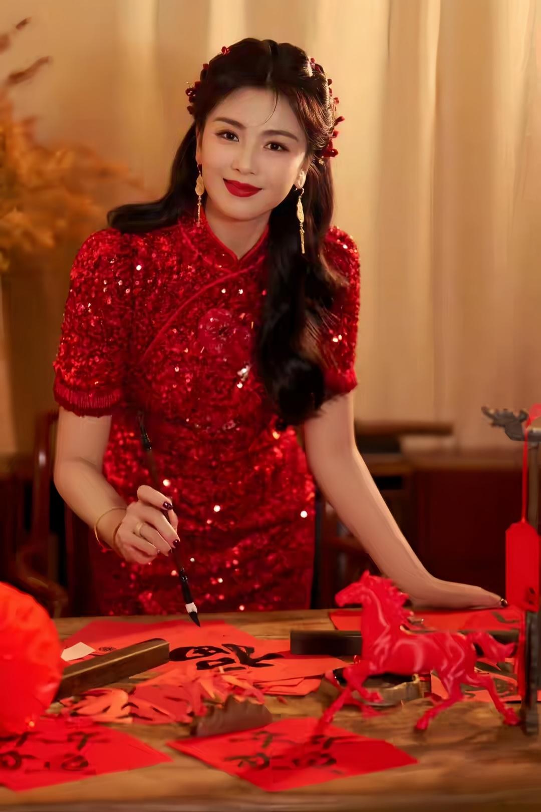 刘涛中式旗袍映衬东方韵,造型温婉动人,锦绣霓裳迎马年。