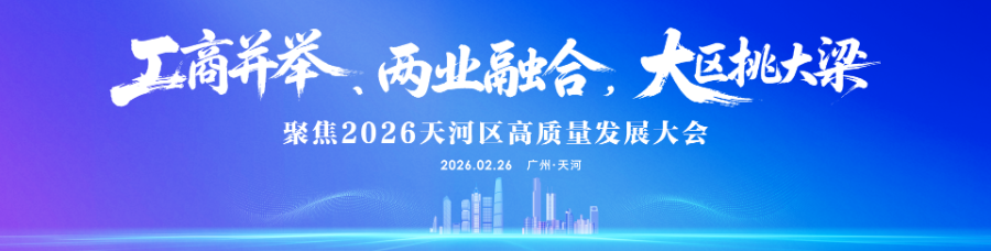 2月26日,广州市天河区召开全区高质量发展大会,动员全区上下坚定信心、接续奋斗,认真贯彻落实全省、全市高质量发展大会精神,拿出跃马扬鞭的勇气,激发万马奔腾的活力,保持马不停蹄的干劲,全力推动工商并举、两业融合,坚决扛牢经济大区挑大梁责任担当,跑好“十五五”关键时期第一程,勃发开局起步新气象。