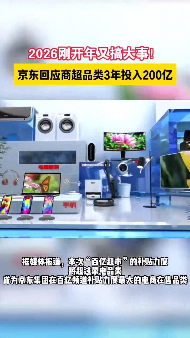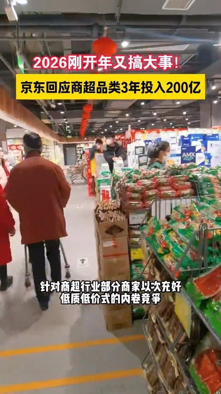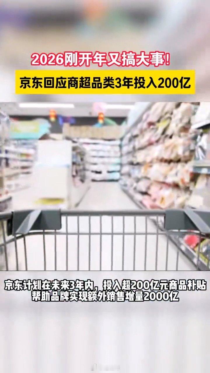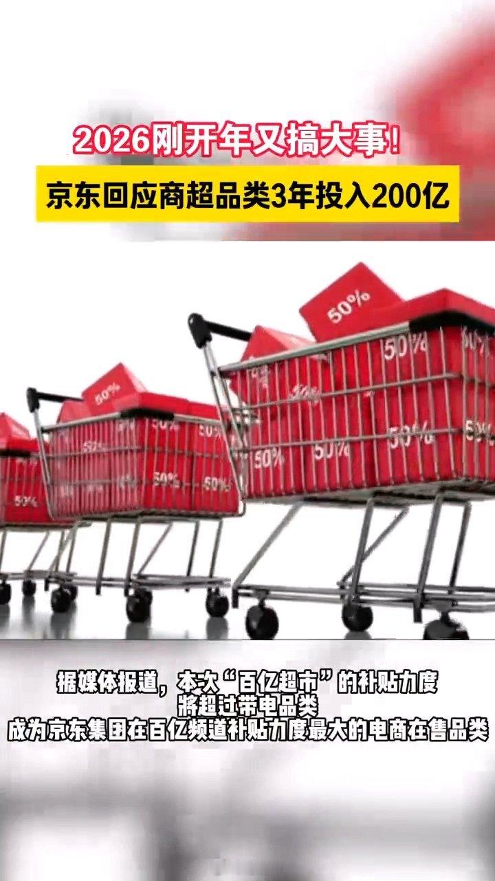 京东回应商超品类3年投入200亿 持续深耕日常消费供给,以稳定供应链、保障商品充足、坚守品质价格为核心,主动扛起行业责任,守护民生刚需,彰显企业社会担当。京东官宣商超品类将投入200亿元