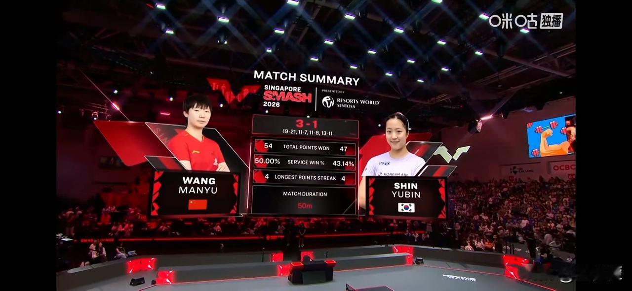WTT新加坡大满贯2026丨女单1/8决赛,王曼昱 与申裕斌的第一局打出羽毛球比赛的比分19:21。 王曼昱🇨🇳3-1申裕斌🇰🇷【19-21,11-7,11-8,13-11】 下一轮对阵:王曼昱🇨🇳VS张本美和🇯🇵 王艺迪3-1伊藤美诚 【12-14,11-7,11-6,11-3】 ,晋级8强。 WTT新加坡大满贯丨男单1/8决赛 林诗栋🇨🇳3-1林钟勋🇰🇷【11-5,11-4,14-16,11-3】 向鹏🇨🇳0-3林昀儒(中国台北)【8-11,5-11,4-11】 WTT新加坡大满贯丨女双半决赛 蒯曼/陈熠🇨🇳1-3早田希娜/张本美和🇯🇵【9-11,11-6,6-11,7-11】 申裕斌🇰🇷/长崎美柚🇯🇵3-0迪亚克努🇷🇴/肖瑶茜🇪🇸【11-5,11-6,11-7】 乒乓球乒乓球新加坡赛 WTT新加坡大满贯赛