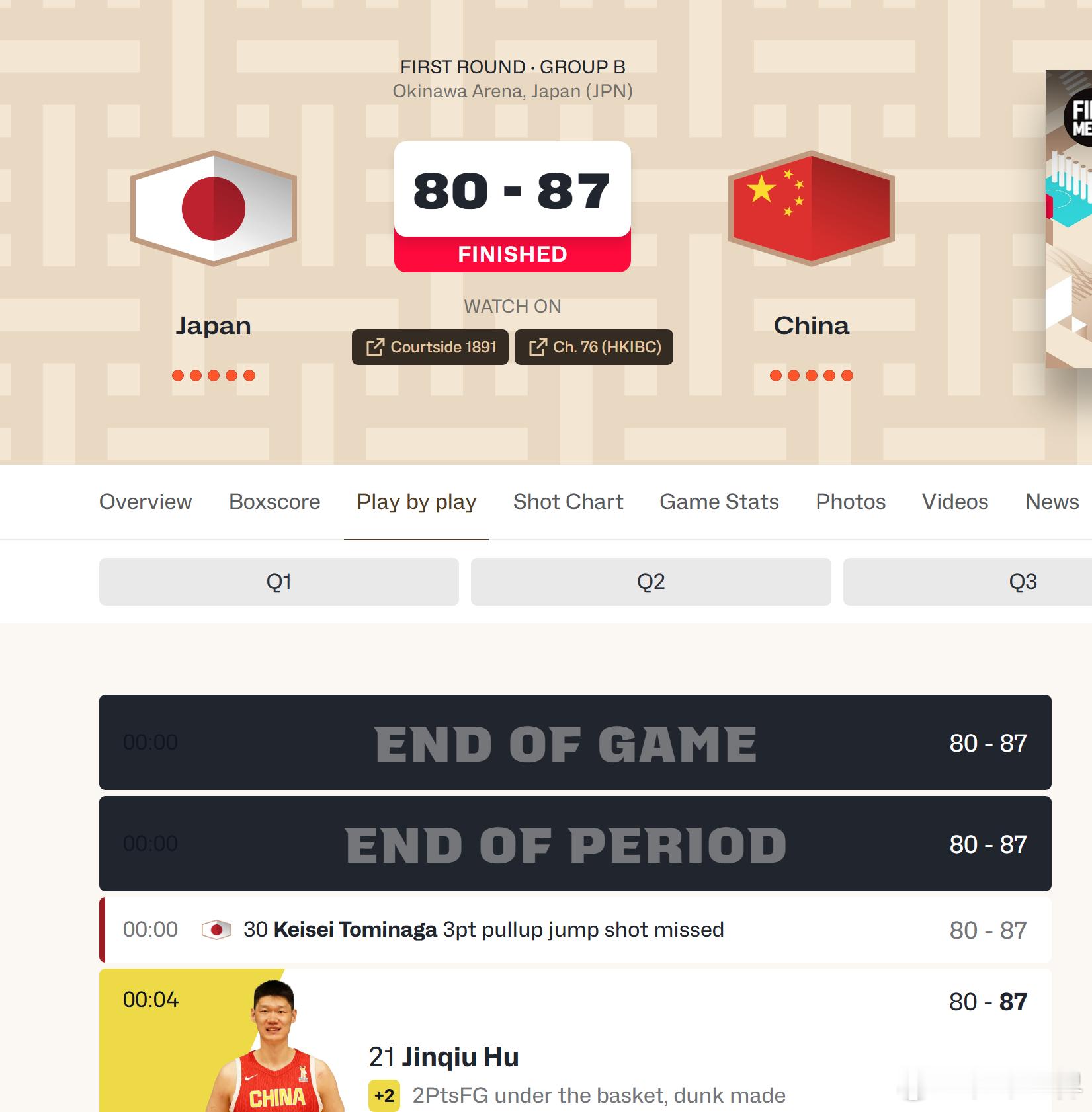 没有用的,胡金秋扣篮打进,中国队赢了。胡金秋 (Jinqiu Hu):20 分廖三宁 (Sanning Liao):16 分赵继伟 (Jiwei Zhao):14 分贺希宁 (Xining He):12 分赵睿 (Rui Zhao):10 分
