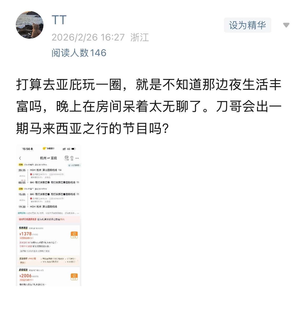 粉丝问我马来西亚好玩吗,他也想去,然后截了一张机票价格,我吐血,原来过年期间的价