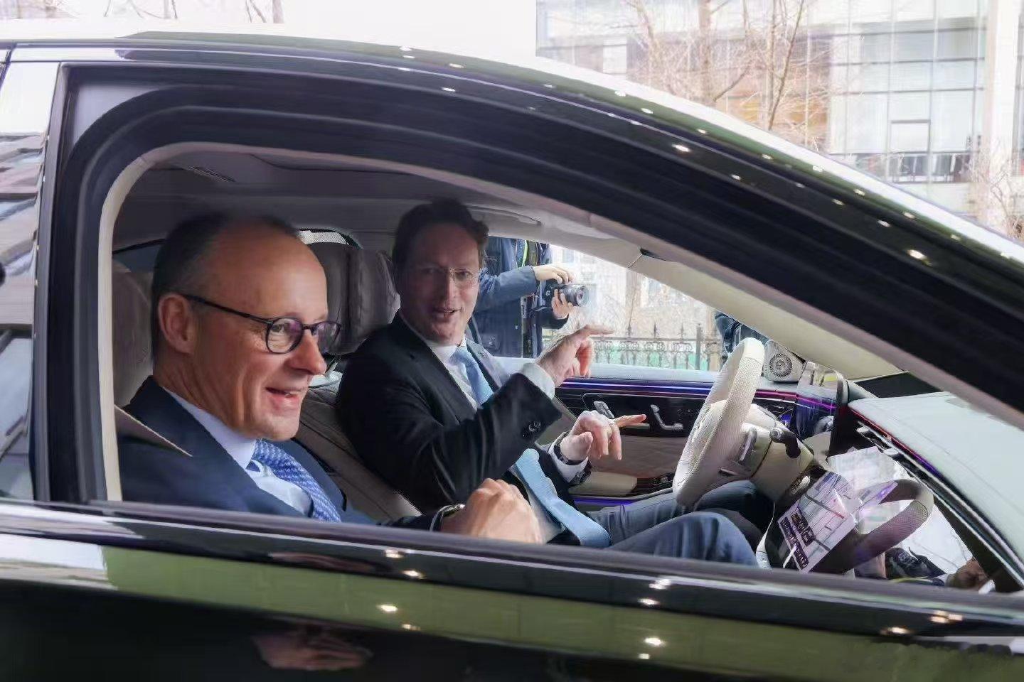 康林松请德国总理默茨体验奔驰S级,重点体验了momenta的智驾,并且发了朋友圈