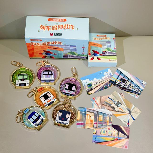 “盲盒里面装的是上海地铁列车流沙挂件,包括6款常规款与1款隐藏款。每款均复刻了上海地铁列车的车头外观:2号线的清新绿、7号线的温暖橙、10号线的典雅紫、13号线的活力粉、9号线的深邃蓝、18号线的时尚金……”上海地铁博物馆副馆长郭震告诉记者,每款盲盒中都带有专属的纪念个性卡,可免费乘坐上海地铁一次。同时,纪念卡片上的地铁插画清新细腻,或展现列车驰骋都市的动感身姿,或呈现定格站台的繁华光影,将上海地铁的独特魅力浓缩于方寸之间,同样具有收藏价值。