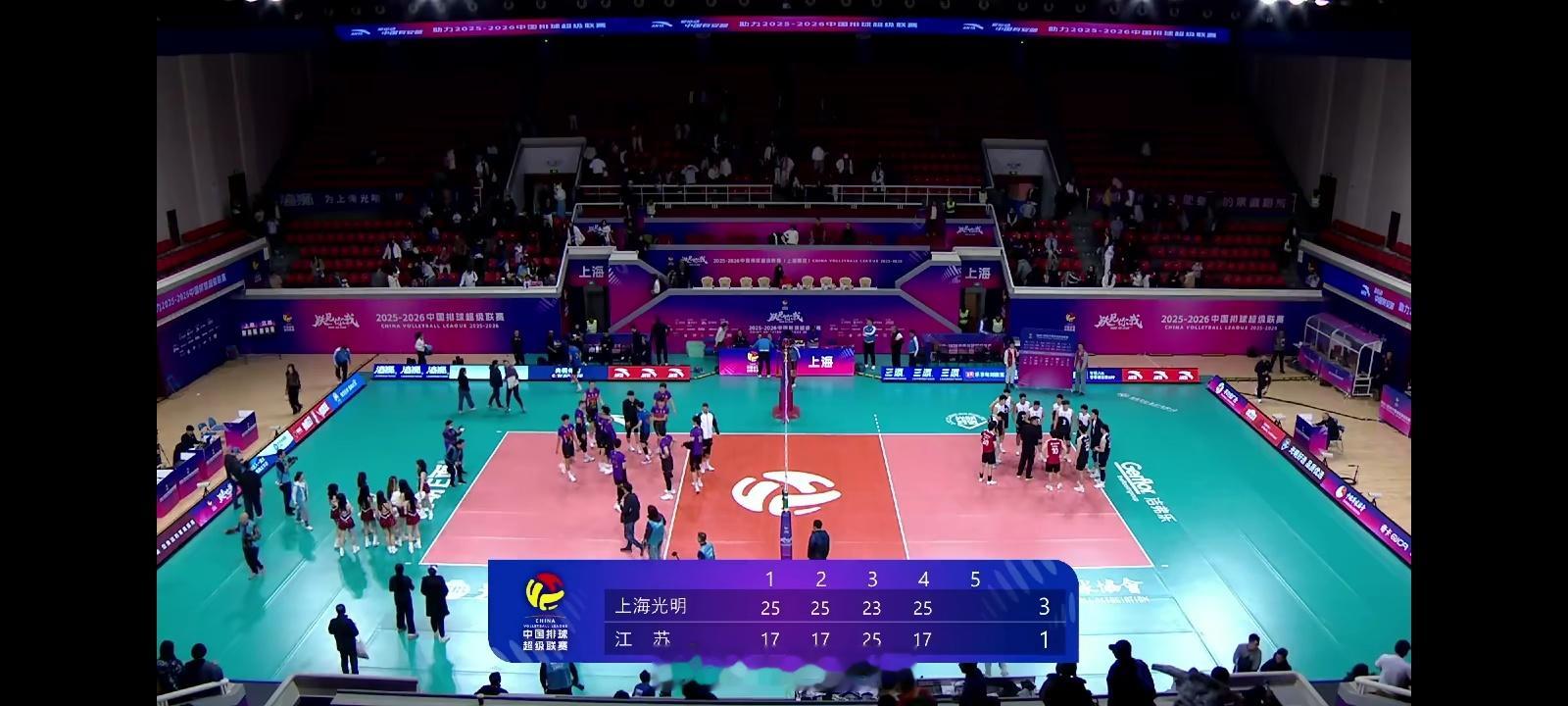 排超联赛 上海男排3比1江苏男排,青岛男排3比1广东男排,目前主场球队全部获胜!