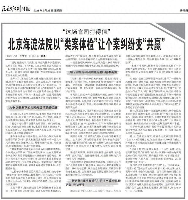 在此背景下,海淀法院法官从全民健身事业发展这一更广阔的社会图景出发,通过系统性的类案调研,将碎片化的个案信息,整合提炼为具有普遍参考价值的规则指引,为纠纷化解和行业治理提供精准支撑。