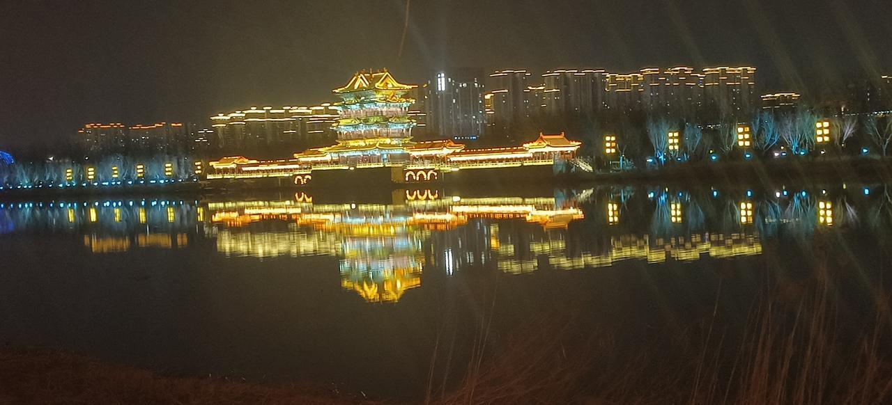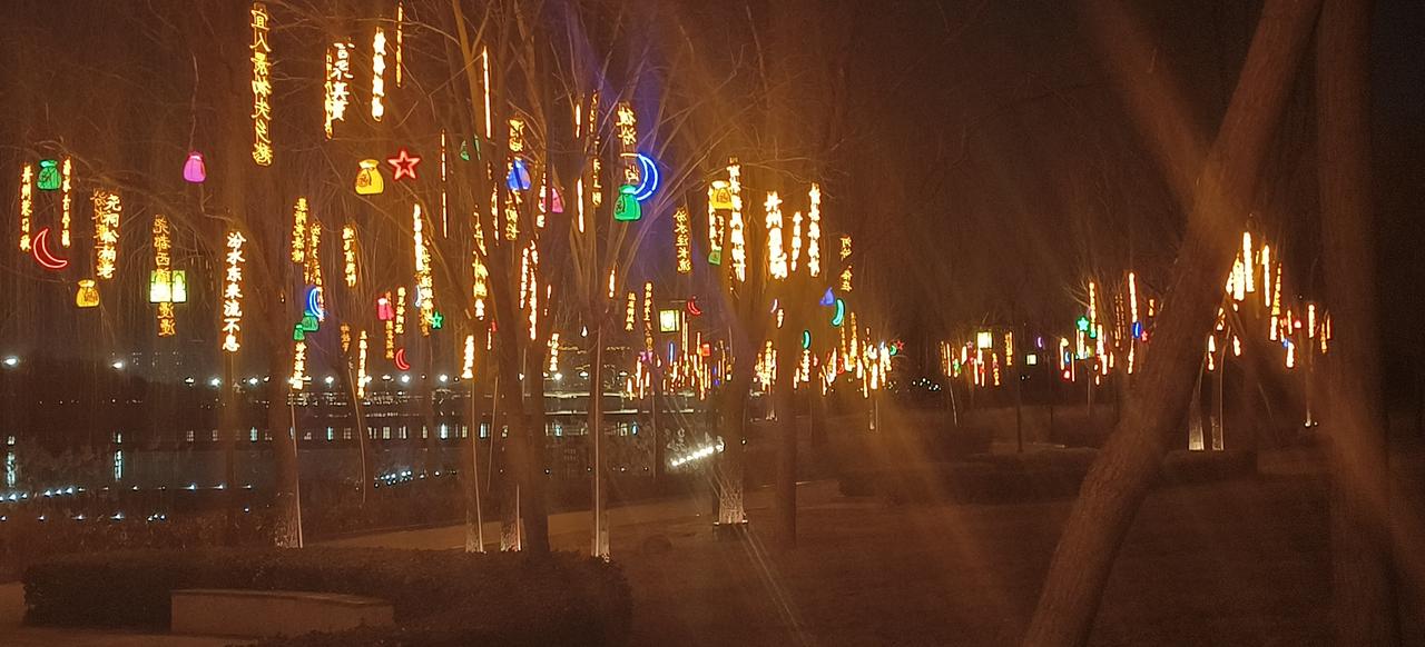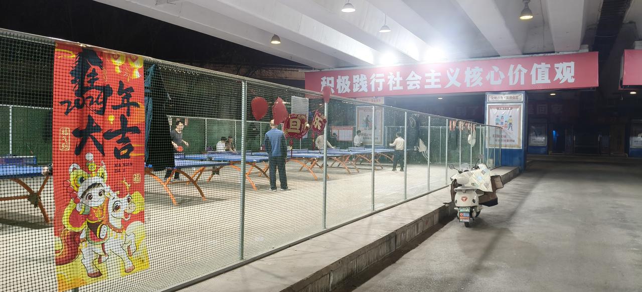 天南地北大拜年欢欢喜喜过大年,群众在夜晚的乒乓球场锻炼身体,在滨河公园欣赏美景如