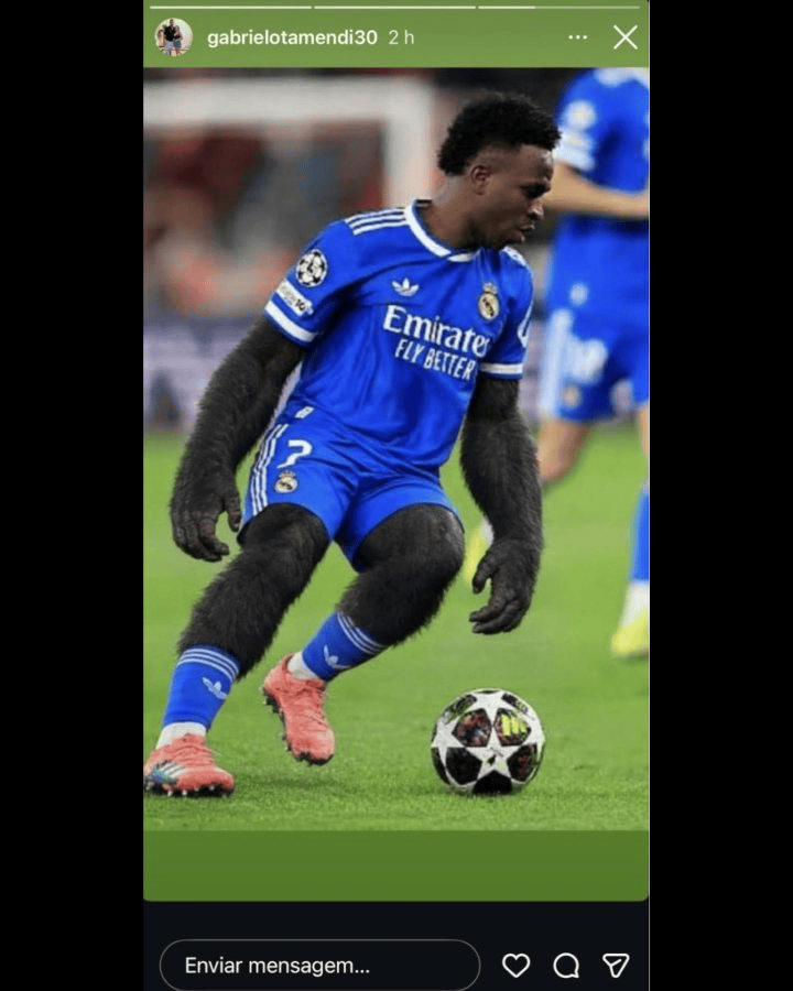 据报道,在昨天皇马与本菲卡的比赛开始前,奥塔门迪的兄弟在个人Instagram上发布了嘲讽维尼修斯的照片。照片中,维尼修斯的四肢都被P成猩猩的形状。