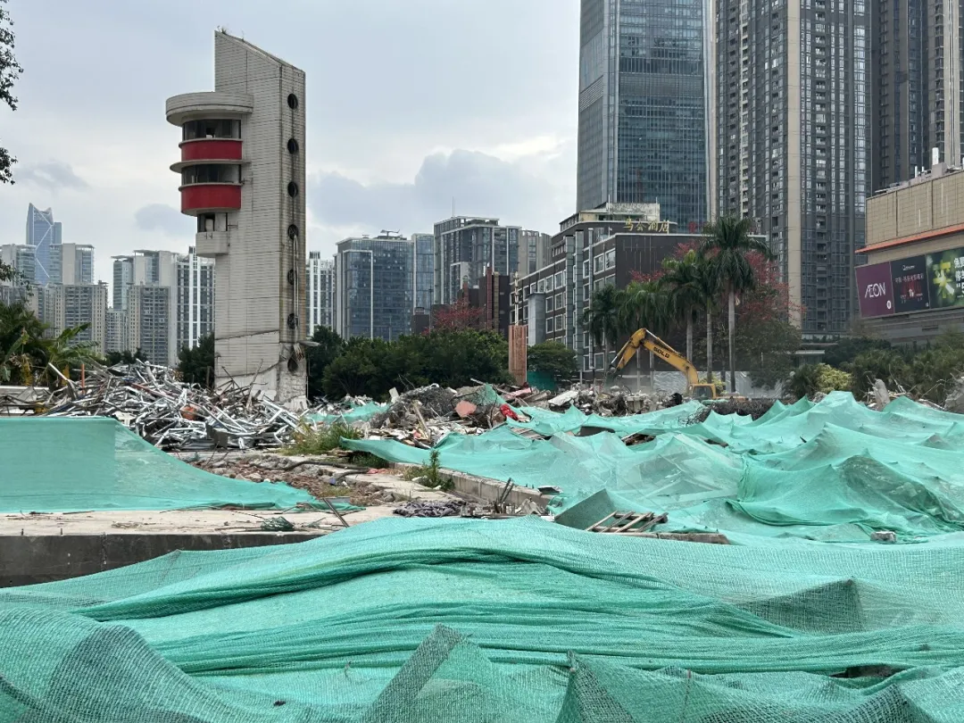 其中,地块东南和北面拆除较多,地面堆起大量建筑废料,一台挖掘机正在作业中。里面的马会家居卖场、商铺已清空,部分建筑被拆除。