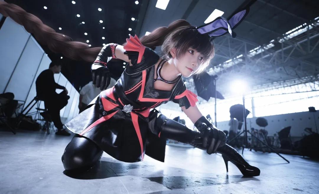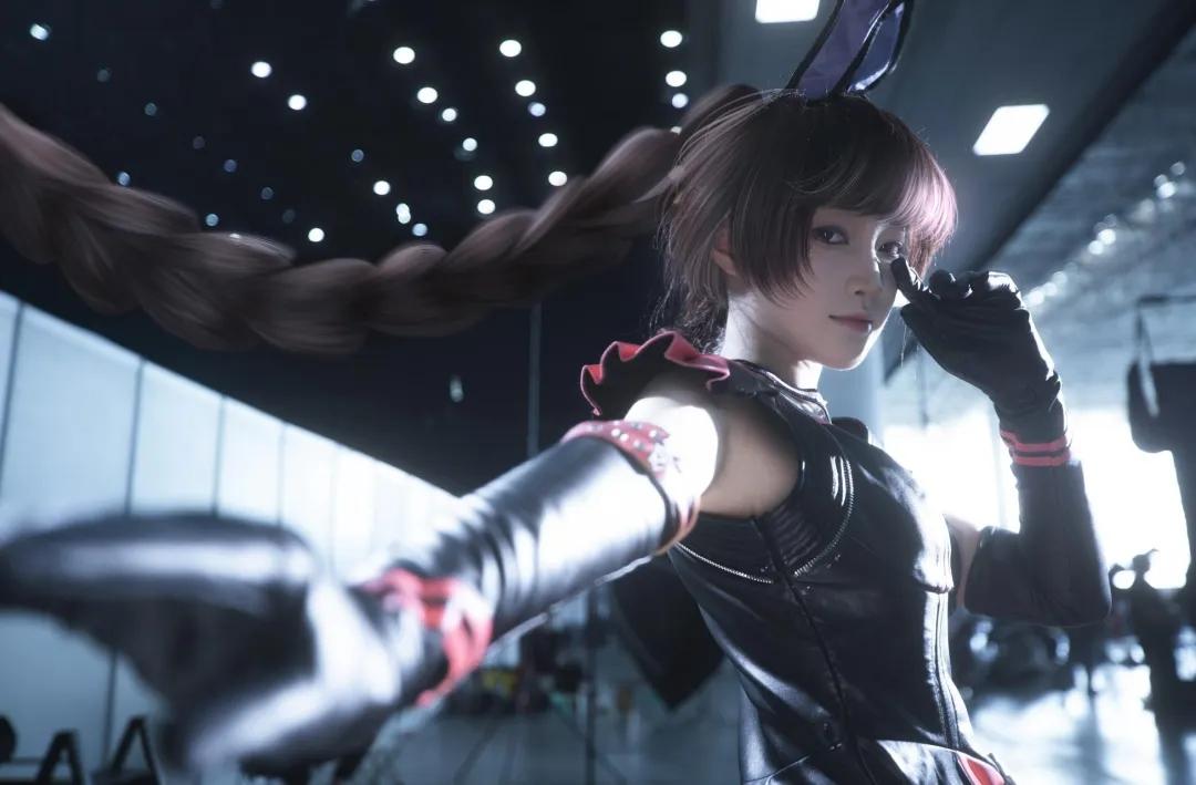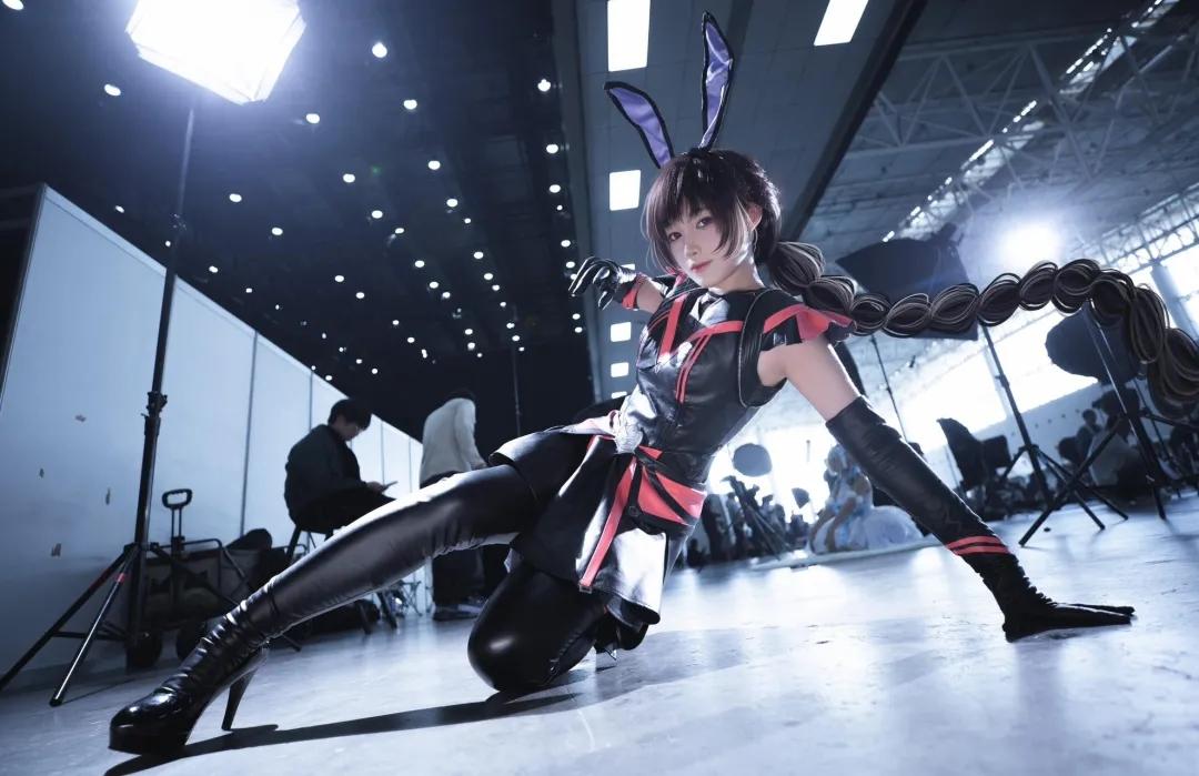 未来科技感十足的赛博朋克女孩,炫酷黑皮装搭配紫色兔耳发饰,气场十足!🚀✨