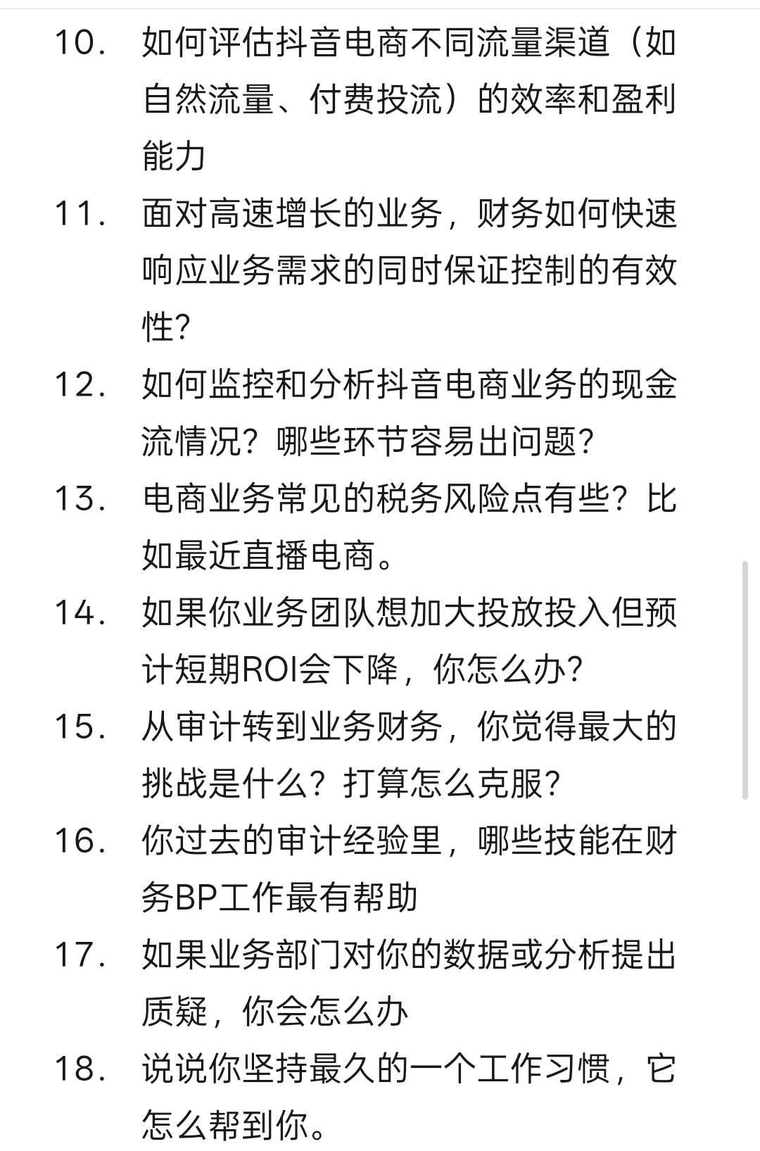 16. 你过去的审计经验里,哪些技能在财务BP工作最有帮助