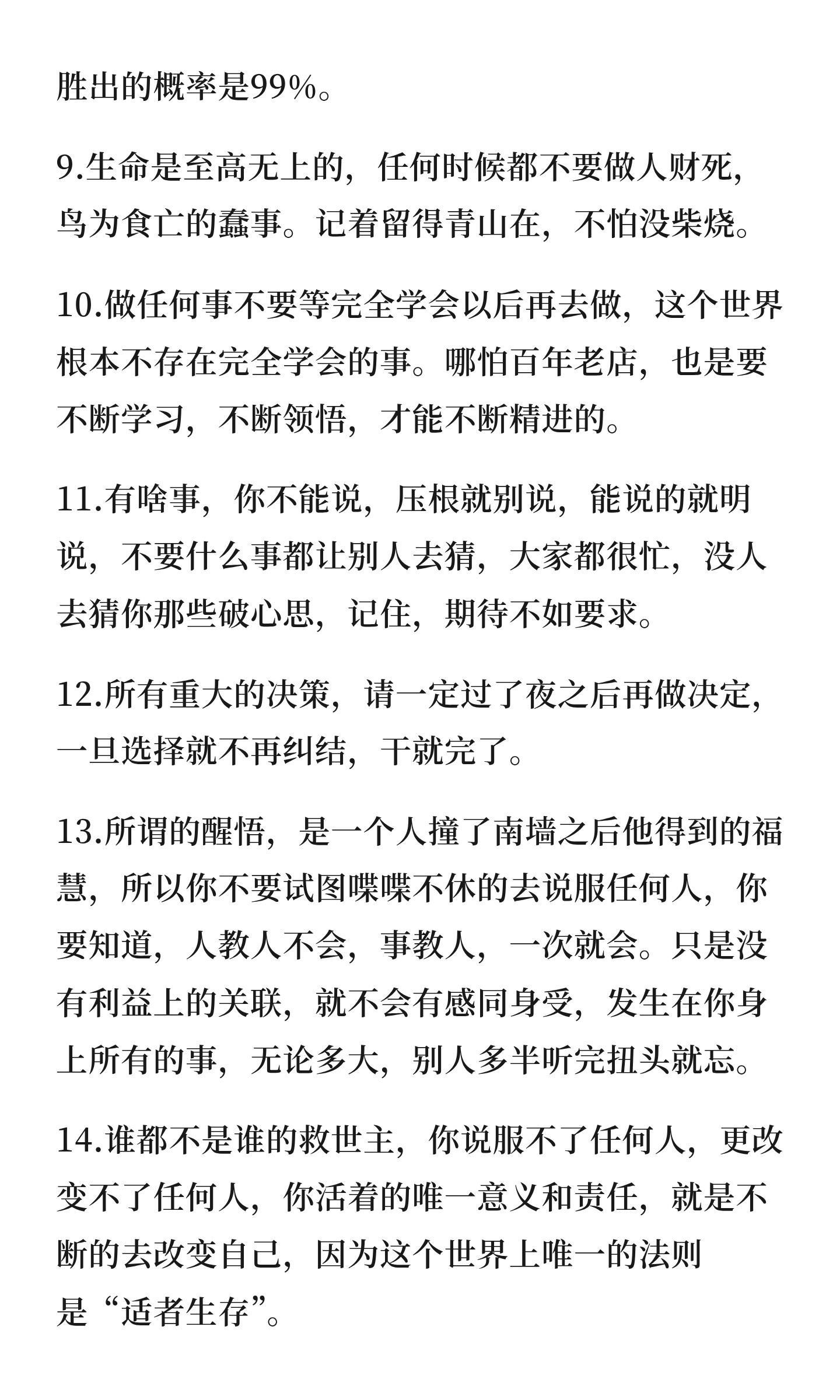 骨灰级大彻大悟的20句醒脑忠告!1、这世界其实就你一个人,你在,世界就在,你不在