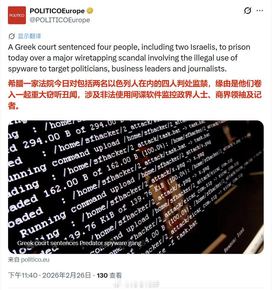 以色列人牛逼哦,全世界当间谍……希腊该不会被以色列按上“反犹”的名头轰炸吧?海外