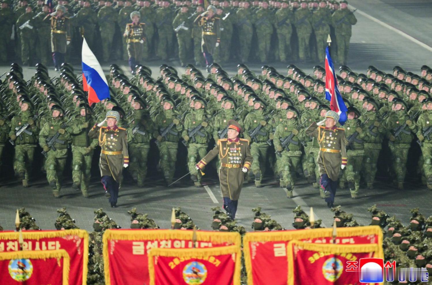 劳动党成立80周年阅兵后,劳动党九大的阅兵式中朝鲜军队继续展现俄罗斯国旗,并身着
