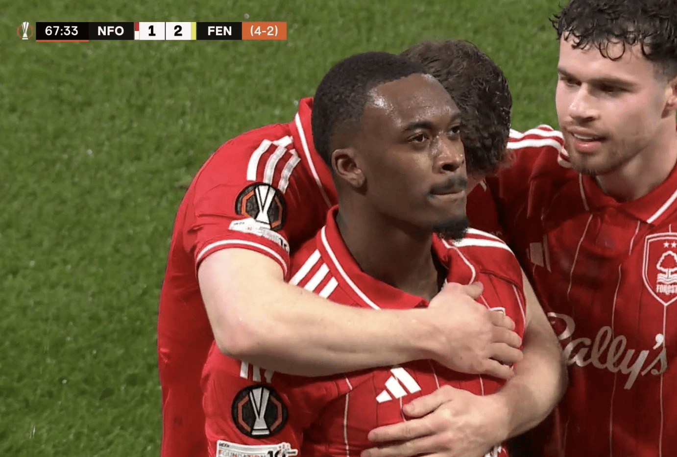 他接到埃纳的传中禁区内左脚低射破门,森林现在总比分4-2领先费内巴切。