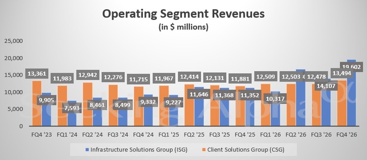 最新发布的第四季度财报已经展现了AI业务的强大驱动力。财报显示,戴尔第四季度总营收同比增长39%,达到创纪录的334亿美元,超出市场预期的317.3亿美元。调整后每股收益为3.89美元,也高于预期的3.53美元。其中,包含服务器、存储和软件在内的基础设施解决方案集团(ISG)营收飙升73%,达到196亿美元。而涵盖个人电脑(PC)的客户解决方案集团(CSG)营收增长14%,至134.9亿美元。